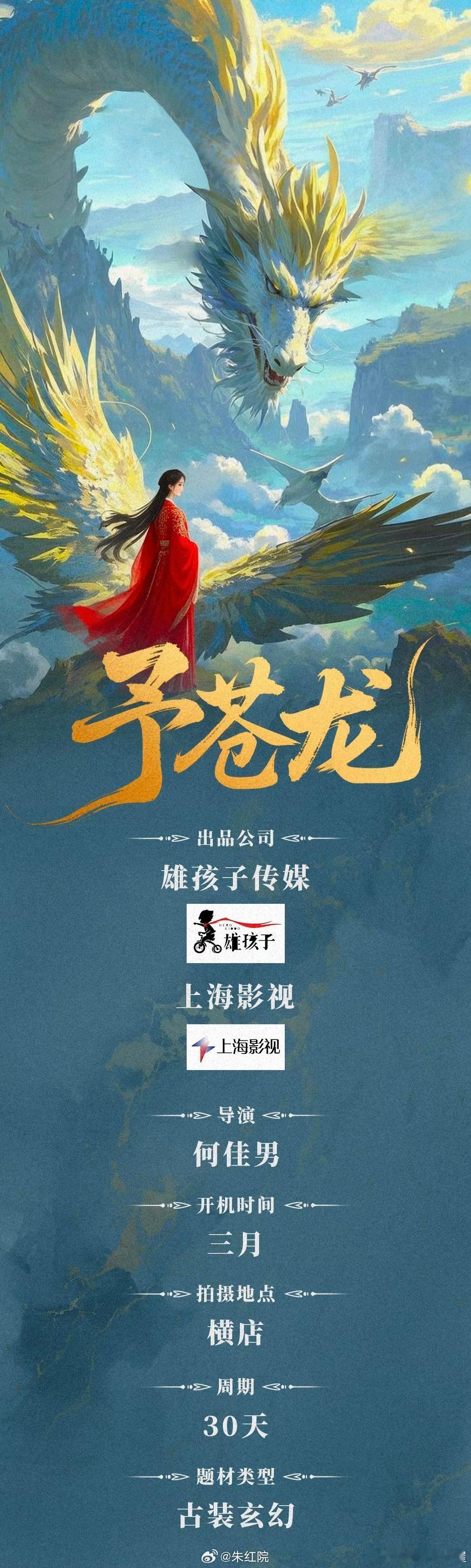 🍉古装横屏中剧《予苍龙》李汶翰、胡连馨3月横店开机,拍摄周期30天。