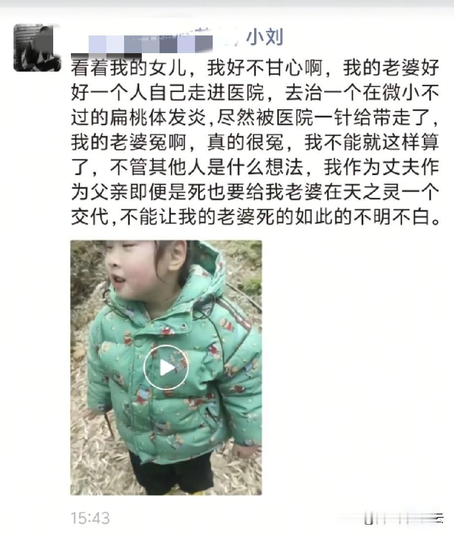 湖南益阳打针过敏去世的女子,她输液的时候,看的出来她就已经很难受了,一直在摸着脖子,还有呕吐、按头的动作,丈夫也在旁边看出了异常,和她沟通了几句话后,就开始呼叫护士。 有个护士过来,拔了针就离开了。我觉得这个时候,如果护士能在旁边观察一下,或者找医生过来看一看,会不会就能救回女子的生命。 又过了几分钟,女子已经休克了,丈夫看着挺手足无措的,这时医护人员才推着担架过来,仍然不紧不慢的。 可惜女子才26岁啊,她的女儿也就四五岁,女孩小小年纪,就失去了最爱她的妈妈。这也是她一生的意难平。 女子丈夫说,他到现在都不敢相信,妻子就这么没了,他觉得他们很冤枉。他想会为妻子讨回公道。可是维权真的很难。 大家给这件事点热度吧,毕竟个人向医院维权,真的不容易。[祈祷][祈祷][祈祷]