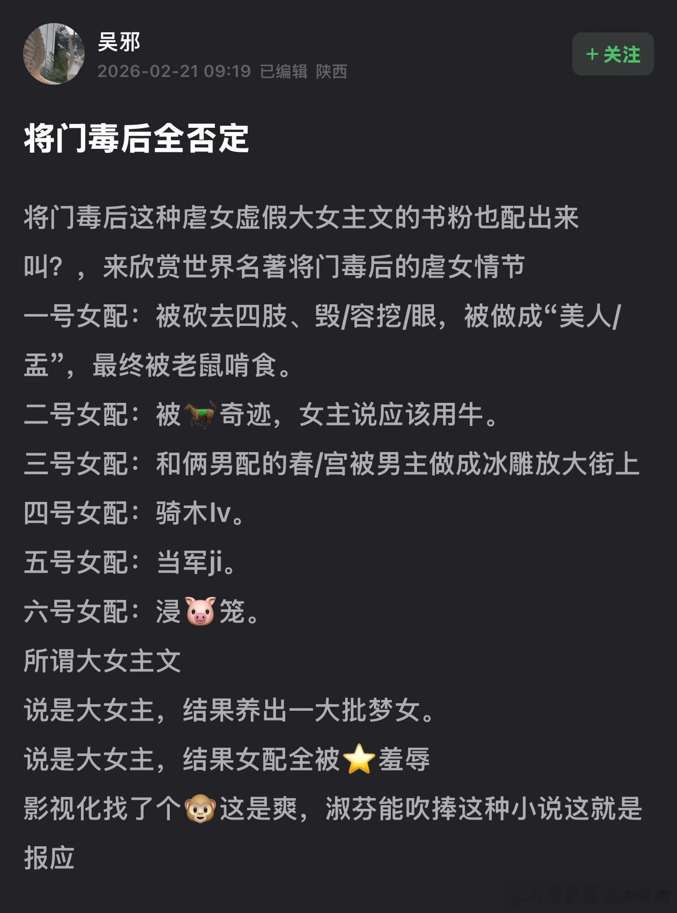王鹤棣孟子义官宣将门独后以后,原著小说被审判了,觉得千山茶客的原著剧情几乎都是虐女,女配的下场几乎全是和情se有关,说是大女主文结果却养出了谢景行的一大堆梦女,你们怎么看🤔