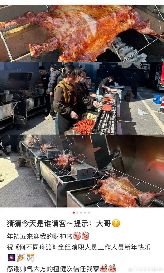 檀健次请《何不同舟渡》剧组工作人员吃烤全羊了!!隔着屏幕都闻着香味儿了
