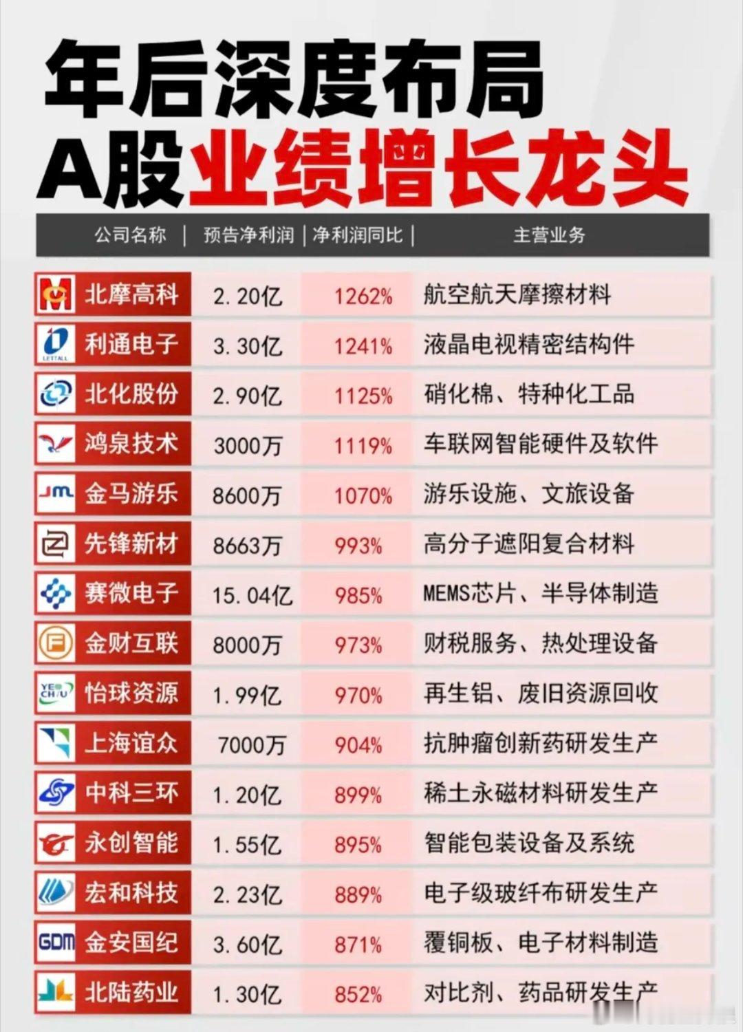 深度布局:A股业绩高增长龙头股!50家公司业绩高增长,最高增长4379%,最低增