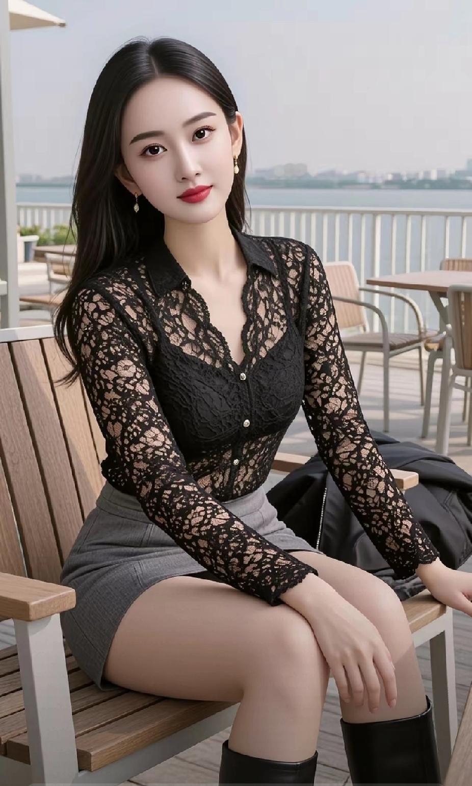 优雅黑蕾丝连衣裙,搭配高筒靴,都市时尚感十足!