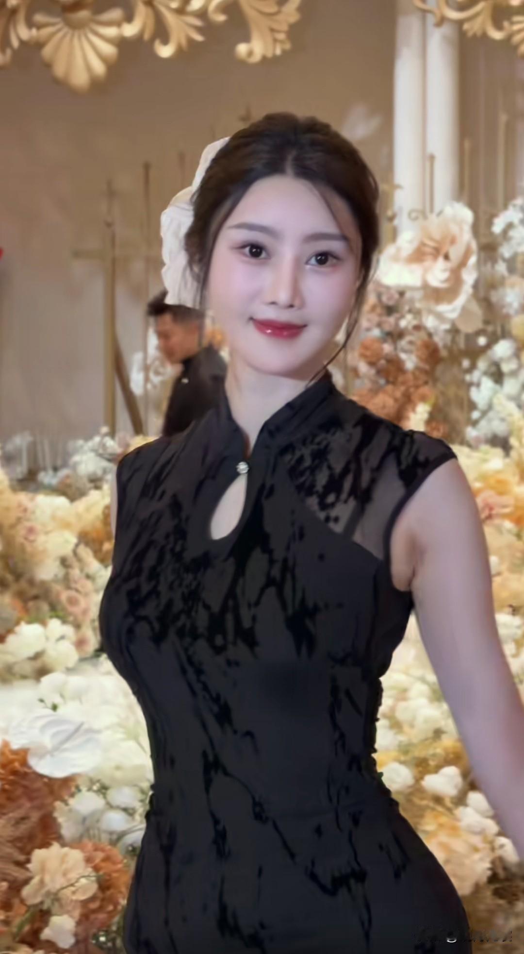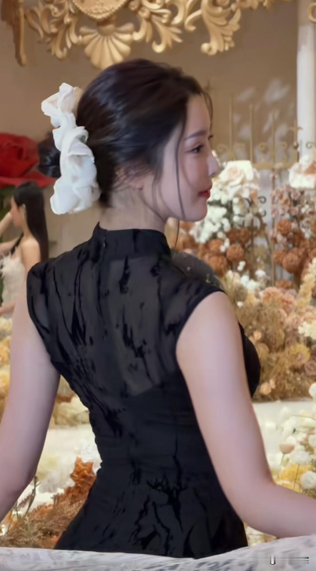 优雅黑裙,花海中的惊艳一瞥