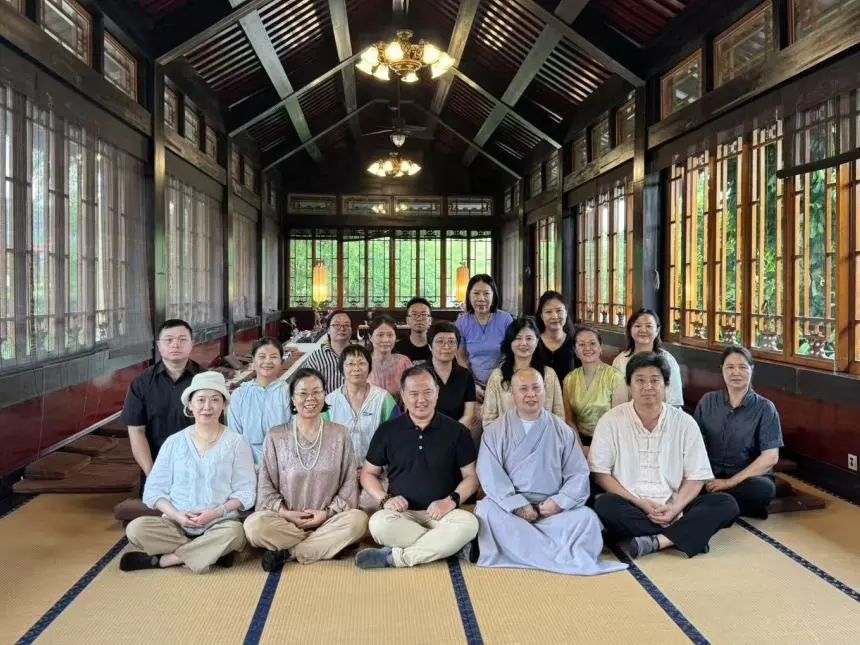 收官之日,学员徒步峨眉,参访庄严的大佛禅院。在梵音缭绕、茶香袅袅中,一场精心筹备的“禅茶古韵”雅集盛大举行。学员们倾情演唱《诗经 关雎》、赵佶《孔子颂》、北朝民歌《敕勒川》、《声声慢》、李煜《相见欢 林花谢了春红》、白居易《花非花》、苏轼《定风波 莫听穿林打叶声》、杜甫《赠花卿》等曲目,让古韵新声在千年古刹中回荡,禅意、茶韵、诗心与乐魂完美融合,成为研修营中最令人难忘的精彩篇章。