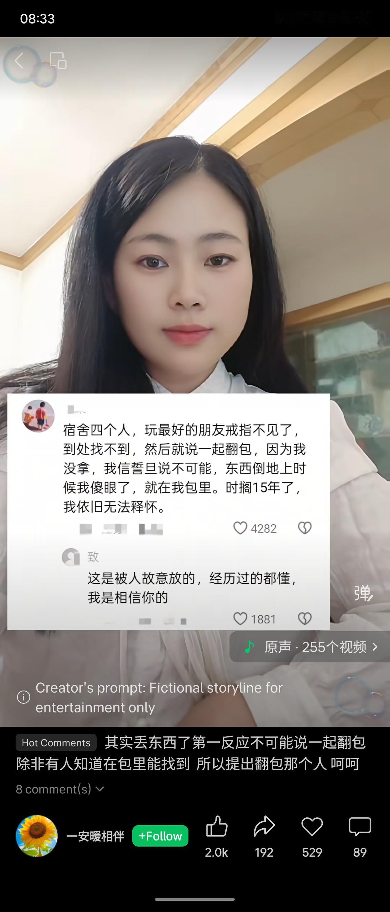 宿舍丢戒指后全员翻包,叙述者自信未拿,却发现戒指在自己包里,15年仍难释怀。网友怀疑遭人栽赃,并指出提议翻包者最可疑。