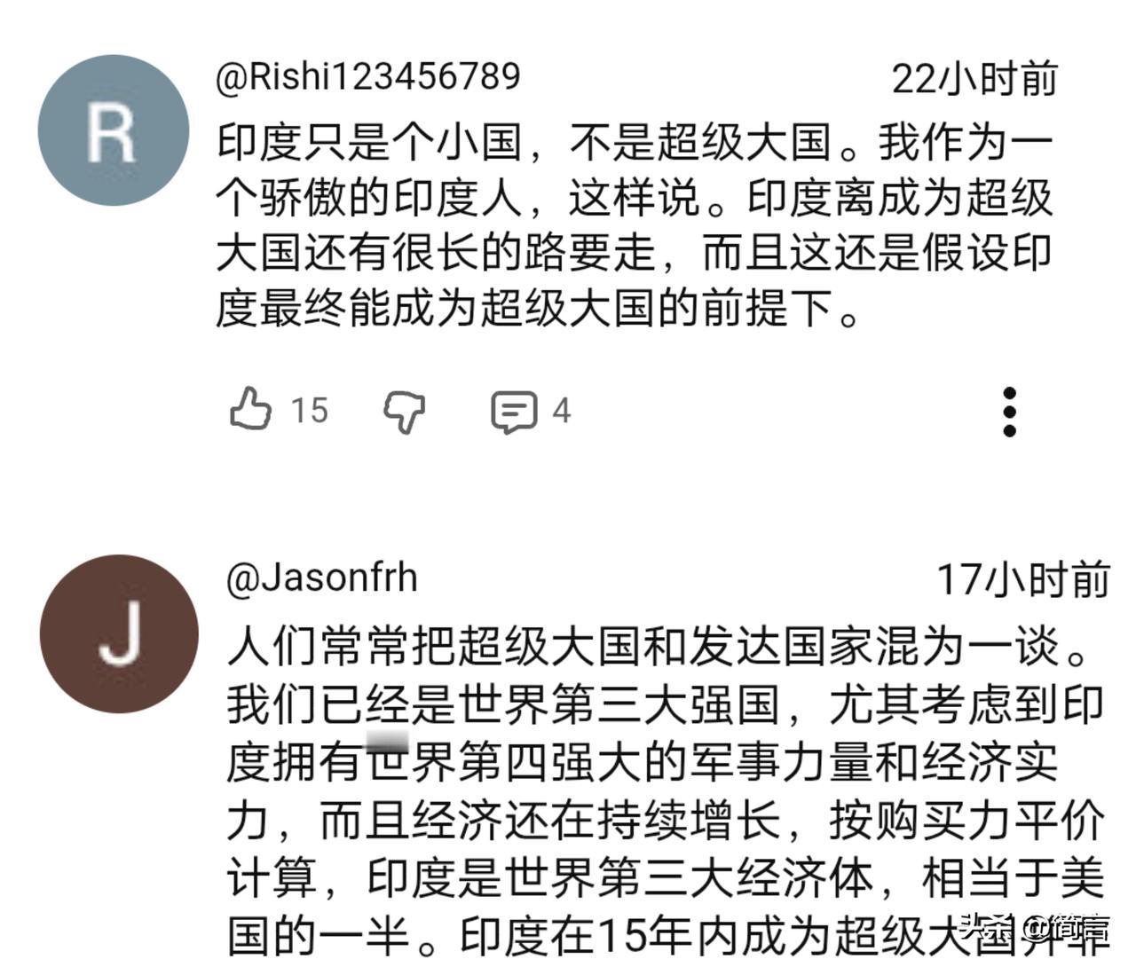 印博主:印度会成为像美国一样富裕的超级大国! 2月20日,一位印博主表示,到2