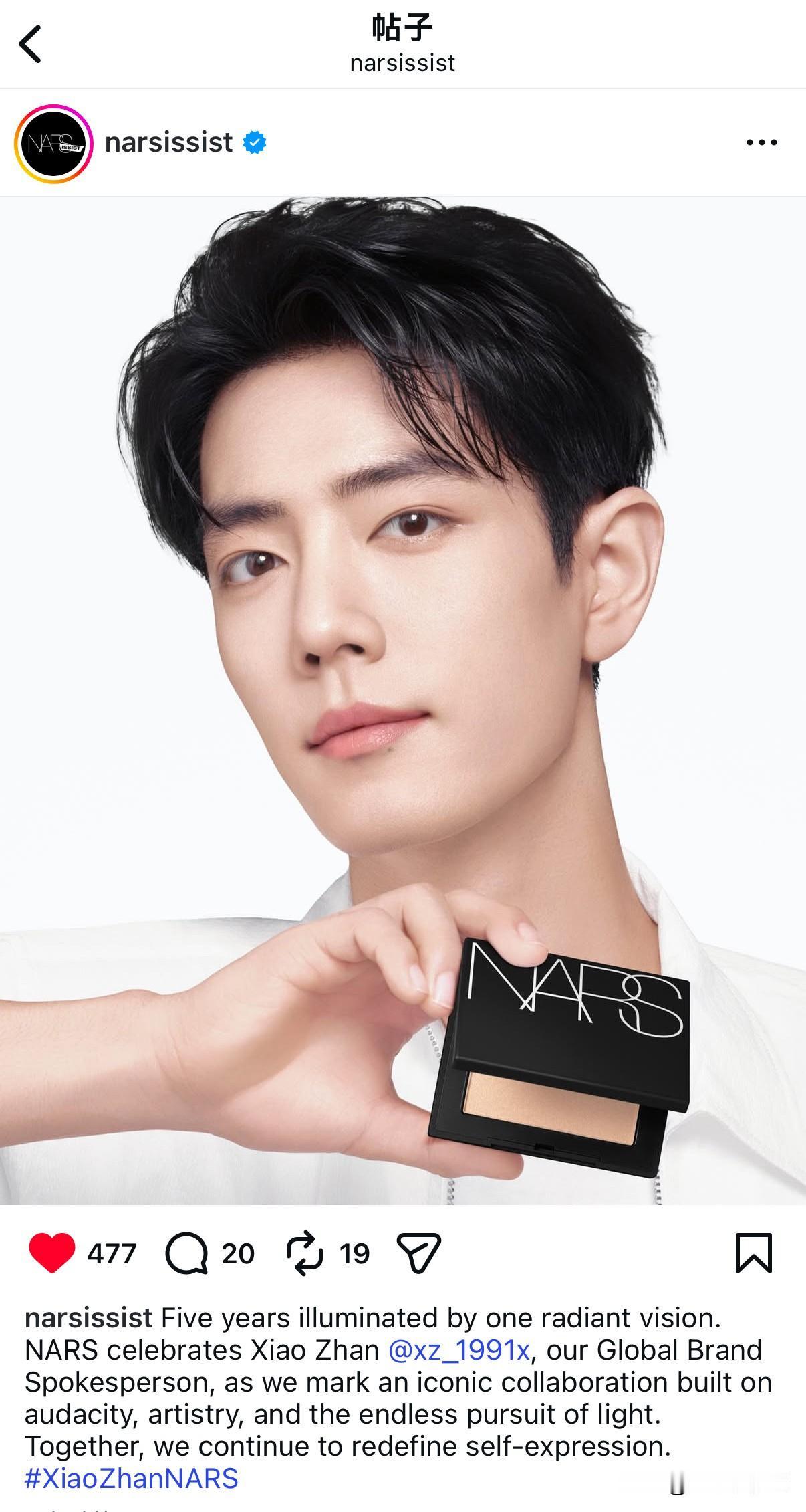 全球官宣,肖战和NARS五年携手,继续前行,有需要的可以入手新款肤色大白饼啦