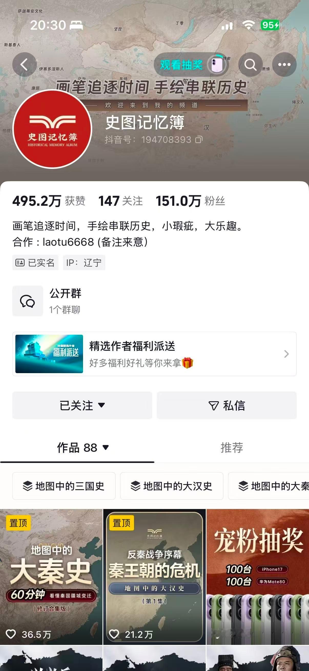 很多人学历史,卡住的并不是事件本身,而是缺少空间感。人物记得住,年代背得熟, 但一问:当时势力分布在哪里?疆域怎么变?战争为什么一定在这打? 脑子里往往是空的。在精选刷到 之后,我对这一点感受特别明显。他最有价值的地方,在于用地图作为第一语言来讲历史。 不是先讲故事,而是先把地理格局铺开: 版图边界、交通要道、势力范围、迁徙方向,一层一层叠出来。很多原本觉得“乱”的时期,比如五胡十六国、南北朝、五代十国, 一放到地图上,逻辑立刻清晰了—— 谁占中原、谁控水路、谁处在夹缝中生存,一目了然。他讲《中国历代疆域变化》那组内容,对建立整体历史框架特别有帮助。 从早期部落分布,到秦汉大一统,再到隋唐扩张、宋元变局、明清定型, 其实是在用空间变化,解释中国历史的演进逻辑。对平时读史书的人来说,这类内容更像是辅助理解工具:书里负责细节,地图负责结构。另外他春节这段时间在痘印精选给粉丝准备了宠粉福利,苹果、华为手机这些都在奖池里。在精选搜【送福利宠粉春节】就能看到入口。历史内容能被更多人认真看,本身就是好事。也欢迎大家在评论区聊聊—— 你目前最感兴趣、也最想系统理清的是哪个历史阶段?