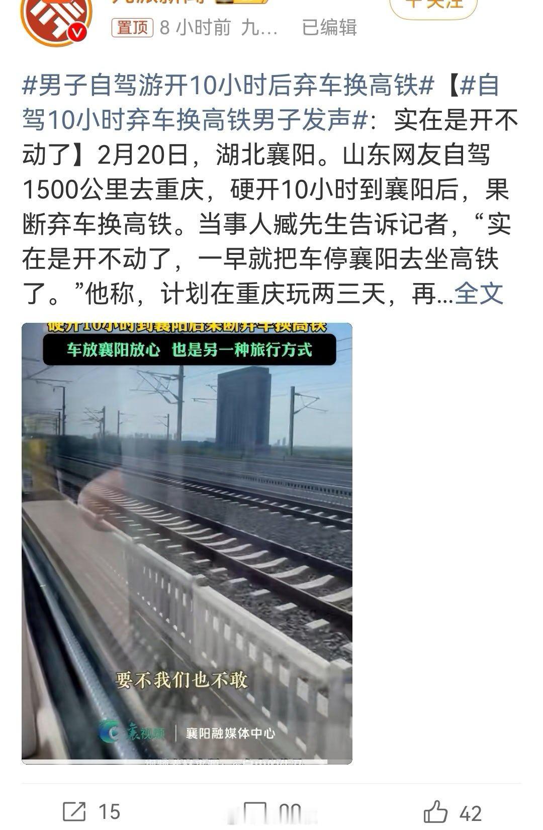 男子自驾游开10小时后弃车换高铁 自驾游何须硬开,这证明你车子没有好用的辅助驾