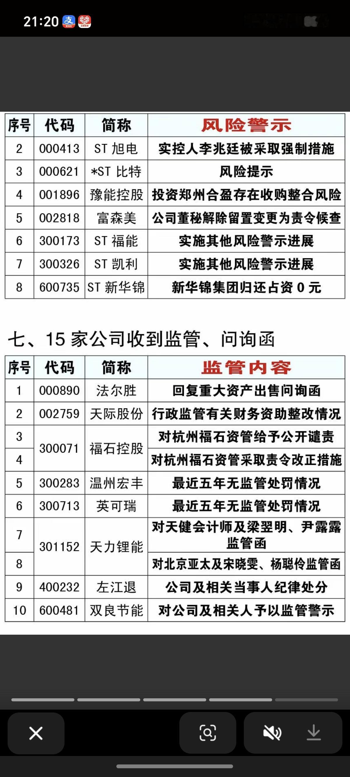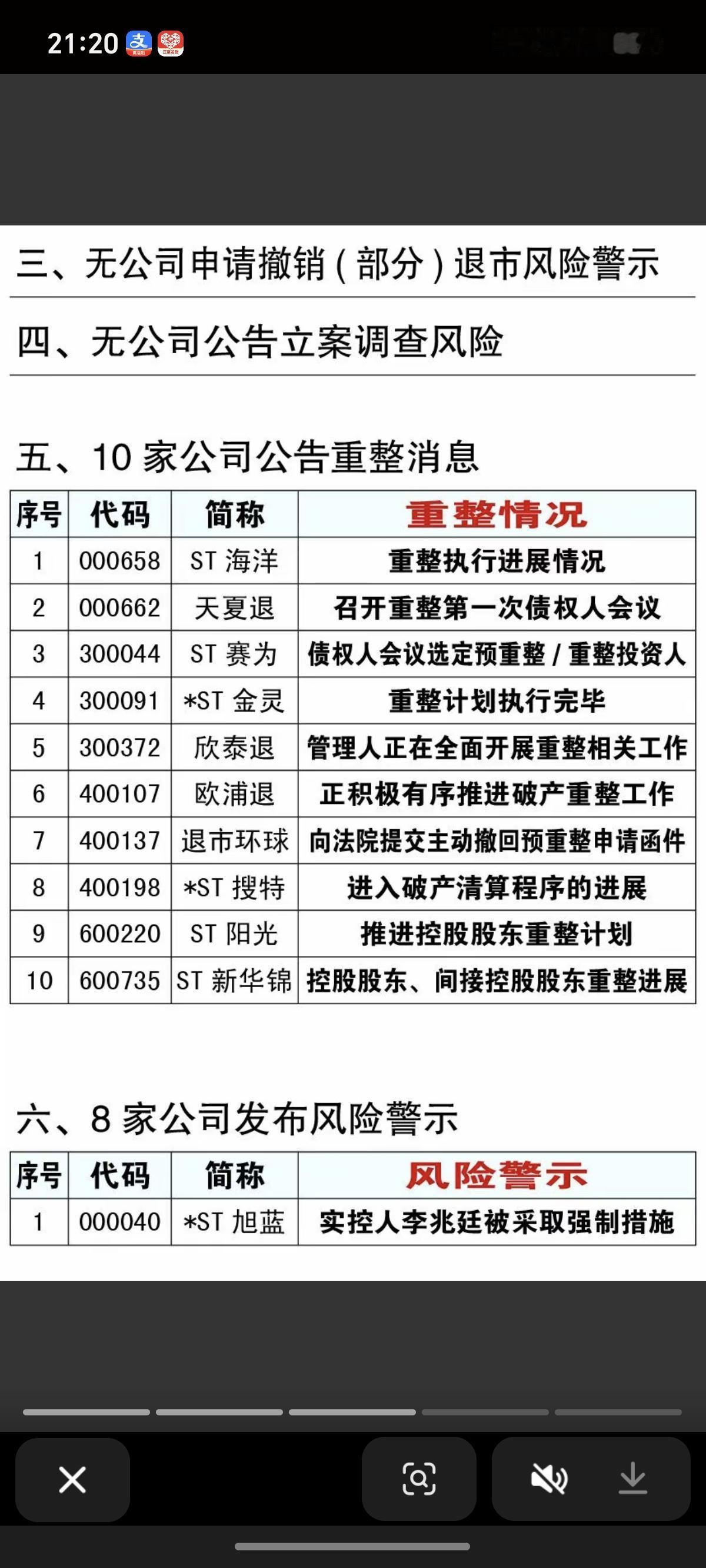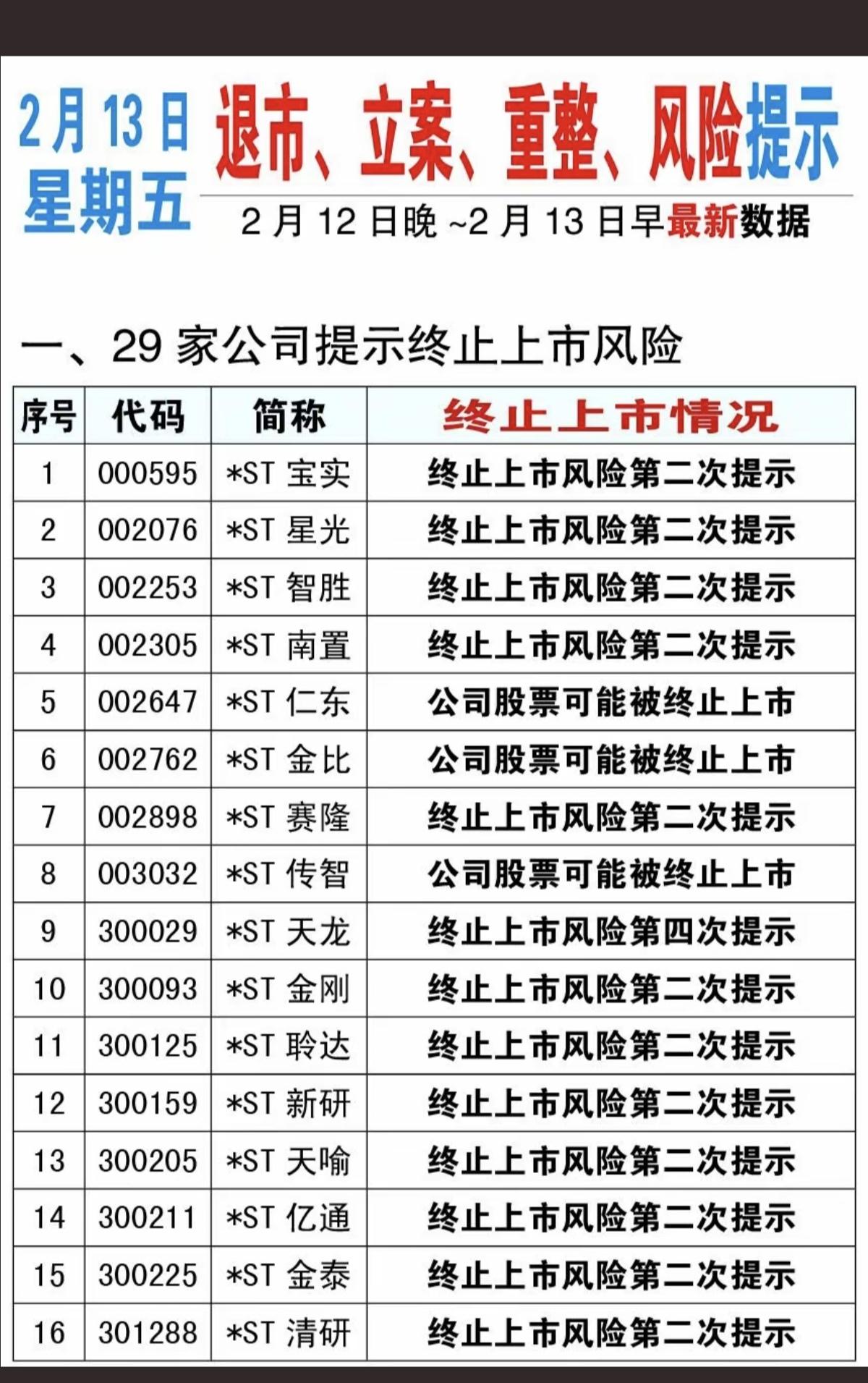 2.21周六 最新:上市公司利空消息汇总 15家公司收到监管、问询函 4家公司提示退市风险 8家公司发布风险警示 10家公司公告重整消息