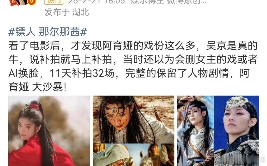 2025年6月,原定饰演该角的那尔那茜因学籍造假与委培违约风波翻车,让这部投资5.5亿的大片陷入危机。当时观众都以为会删戏或用AI换脸糊弄,毕竟补拍要重聚主创、追加成本,风险极大。但吴京拍板放弃捷径,追加1.5亿预算,拉回剧组赴新疆实景补拍。