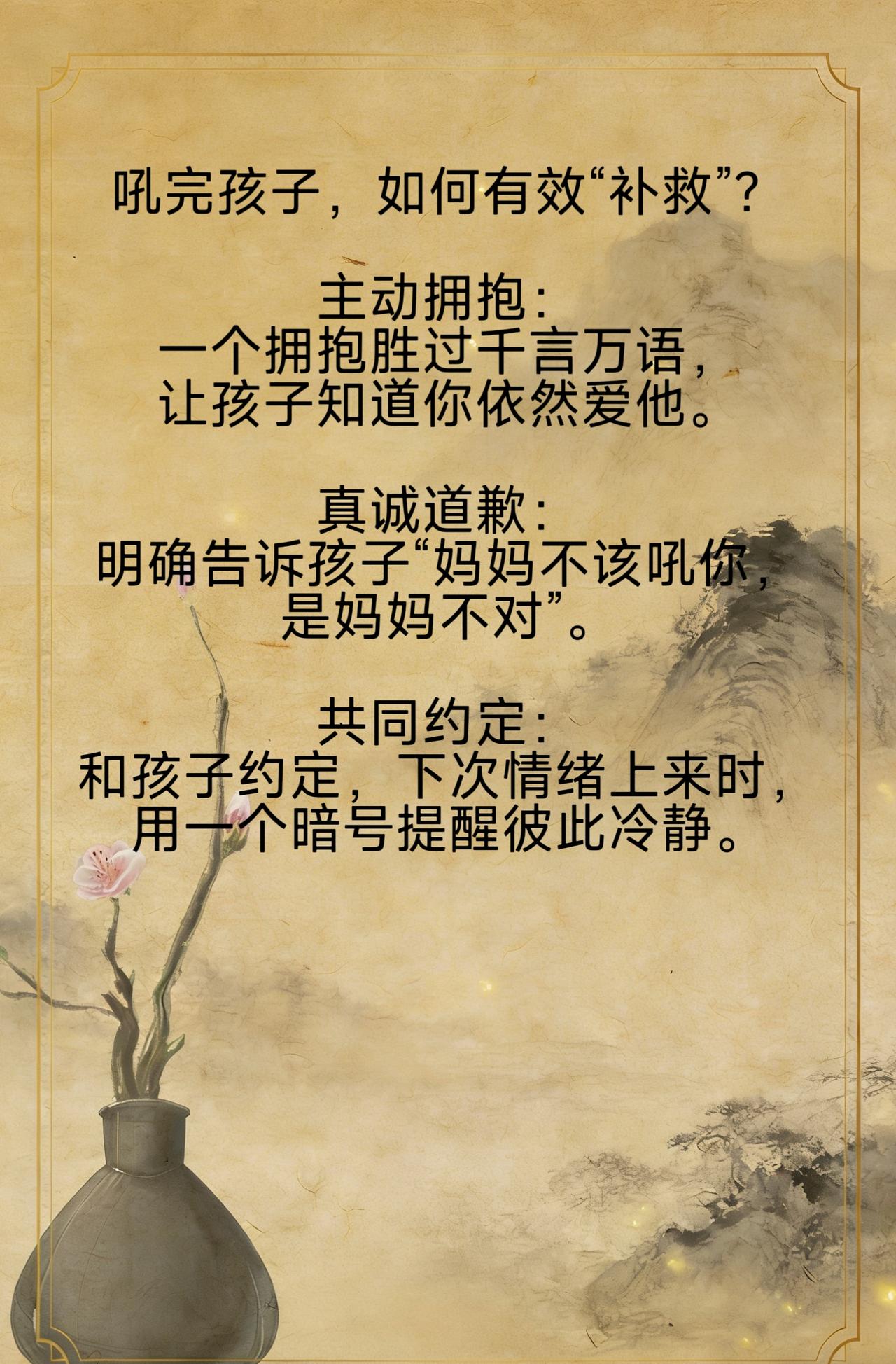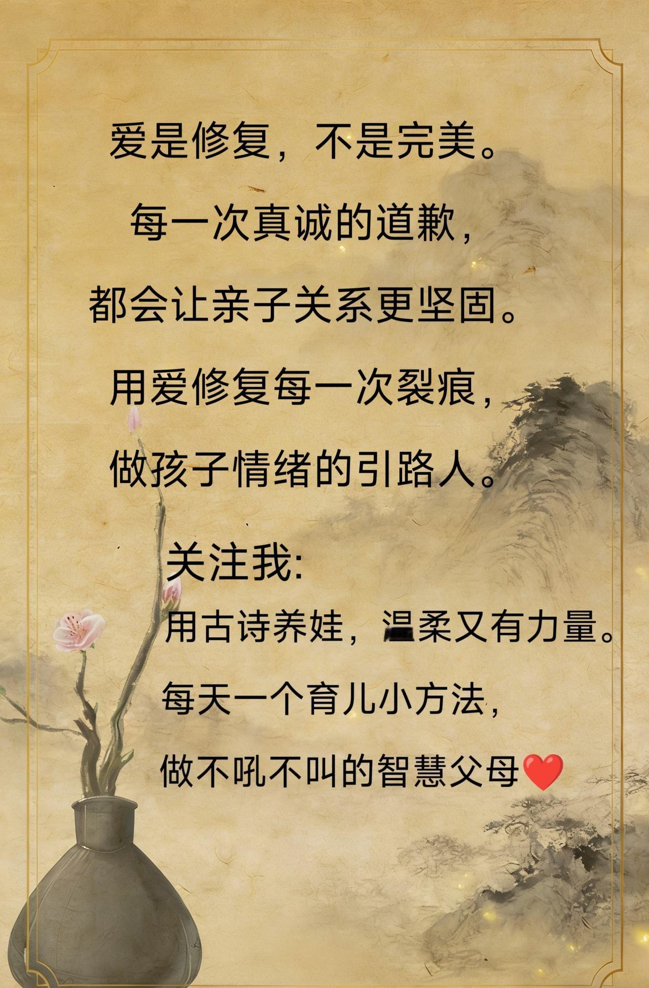 主动拥抱:一个拥抱胜过千言万语,让孩子知道你依然爱他。 真诚道歉:明确告诉孩子“妈妈不该吼你,是妈妈不对”。 共同约定:和孩子约定,下次情绪上来时,用一个暗号提醒彼此冷静。 爱是修复,不是完美。每一次真诚的道歉,都会让亲子关系更坚固。 用爱修复每一次裂痕,做孩子情绪的引路人。 国学启蒙 ,育儿经验 育儿知识分享 国学启蒙