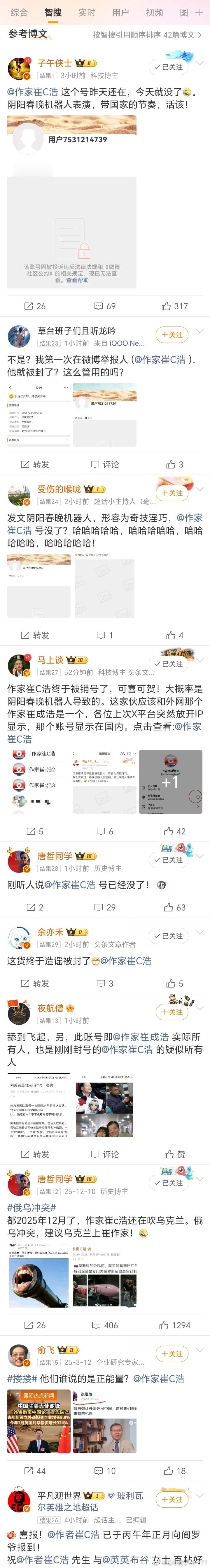 桂哥评:刚刷到,这个崔某终于被封了,被推给不少流量,老(殖)熟人了,跳出来存在感不少,但殖味太重,这么多年了... 这回阴阳怪气,到春晚机器人节目了...