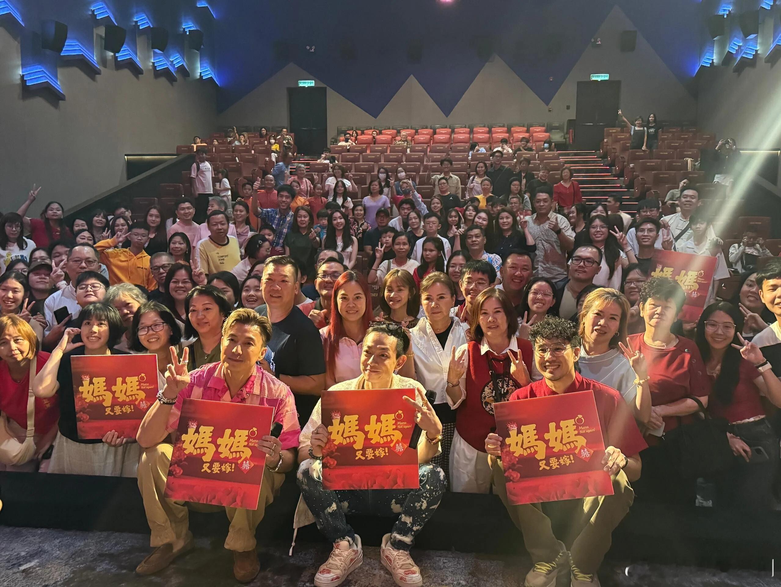 為助力票房再沖高,陳山聰、梁烈唯、Bob,與片中飾演母親的伍詠薇一同全力宣傳。近日三人再度奔赴當地,展開第二輪宣傳攻勢,馬不停蹄走訪多家戲院謝票,親自感謝觀眾的支持。作為一部「笑中有淚、溫馨動人」的合家歡電影,《媽媽又要嫁》成功俘獲大批家庭觀眾,幾位主角的搞笑演出更是收獲觀眾滿滿好評。