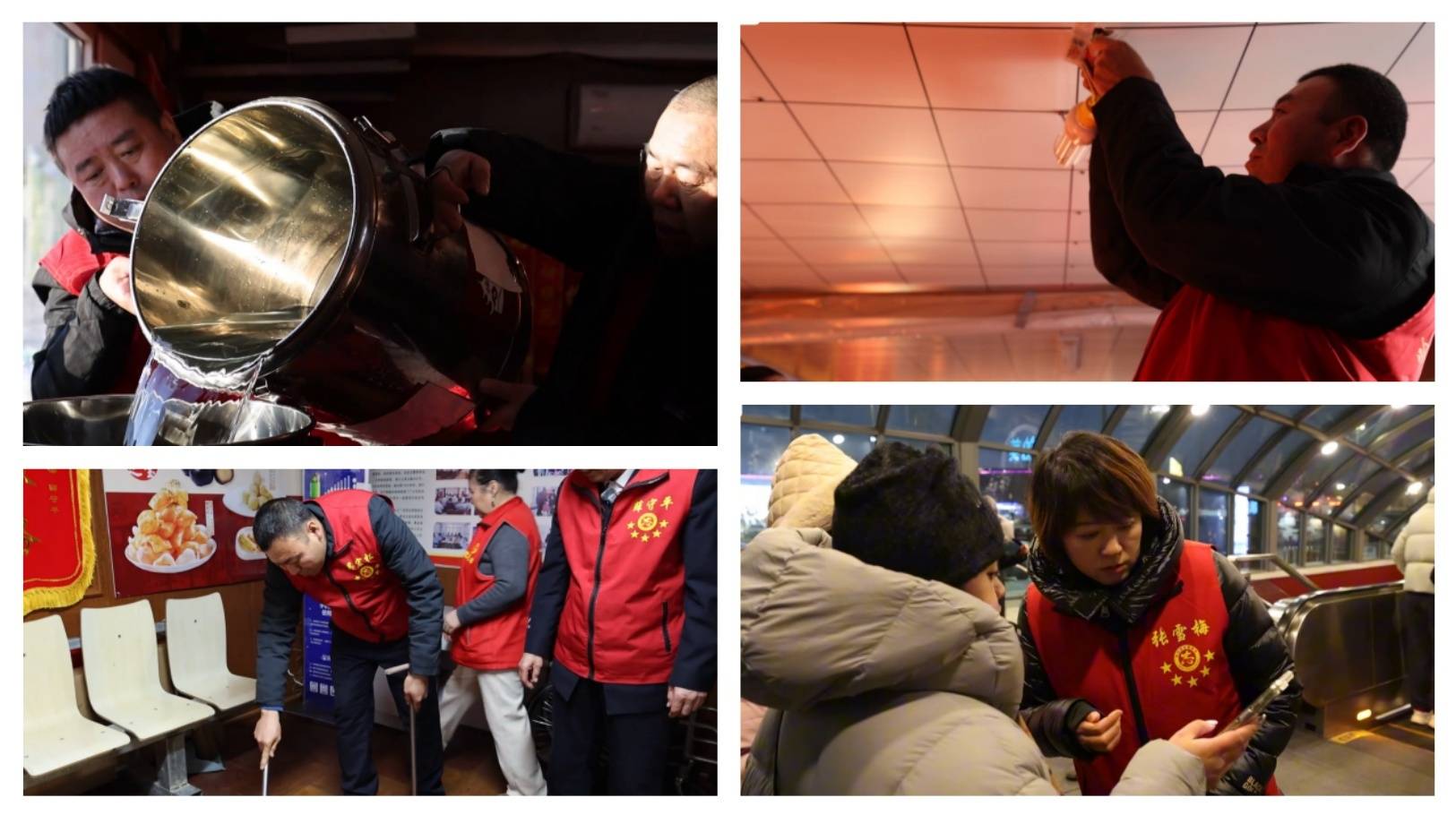 冬天的哈尔滨天黑得早,大家需要提前把热水烧上,小屋里坏掉的灯泡也得及时换上。眼看着天黑了,白天游玩的游客开始出园,晚上来看灯光秀的游客开始进园,地铁人流量突然多起来。志愿者们经常守在这里,为大家提供各种服务。从下午四点开始,志愿者们要工作到晚上八点半,送走最后一波游客后,大家一起打扫卫生,为第二天的接待做好准备工作。