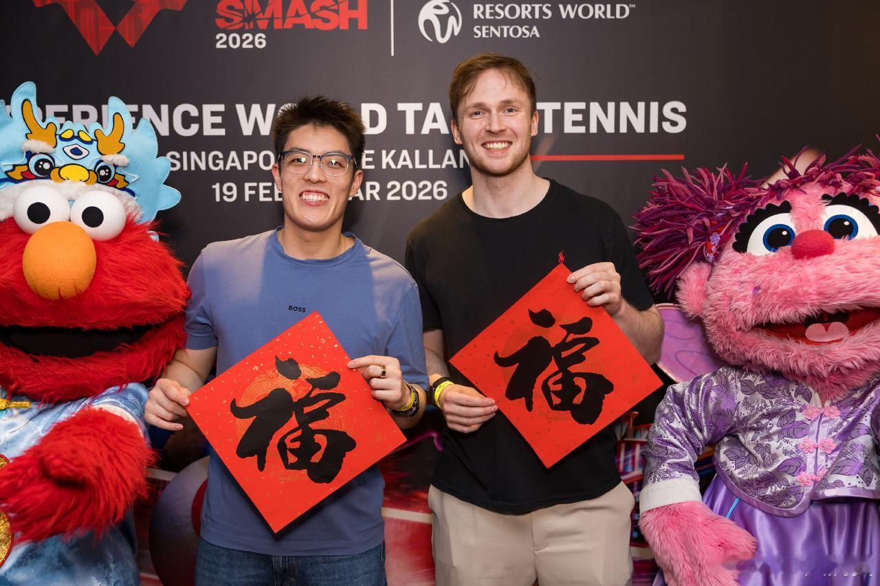 外协会选手的新加坡大满贯晚宴照片[笑哭], 这每个人都拎着一个“福”,或倒着或正