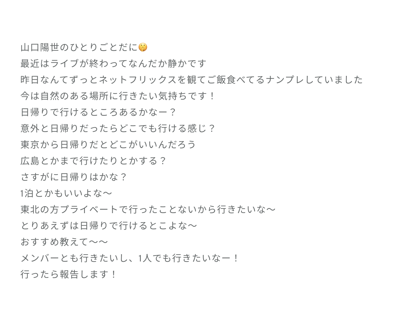 はるよ「本番はもうやるしかないという心情でした。もちろん不安を潰せるだけ潰して、本当に毎日このライブのことしか考えてなかった気がします。ひらがなはありがたいことに全メンバーにしっかりとスポットがあたります。絶対にその機会を逃したくないし、個人的にライブや表現することに対しては本当に誰にも負けたくないとまだまだな私ですが珍しく負けず嫌いが発揮されるんです。だからこそ今までで一番の自分を!表現を!と今出せるかわからない自分を求めようとしてしまいます」