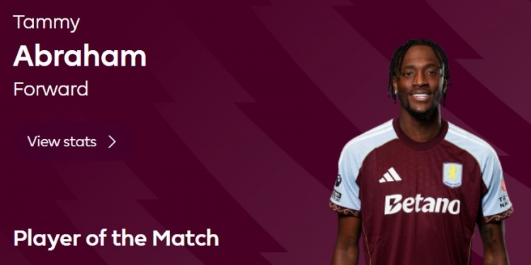 绝平!打进回归英超首球的亚伯拉罕当选维拉1-1利兹联全场最佳