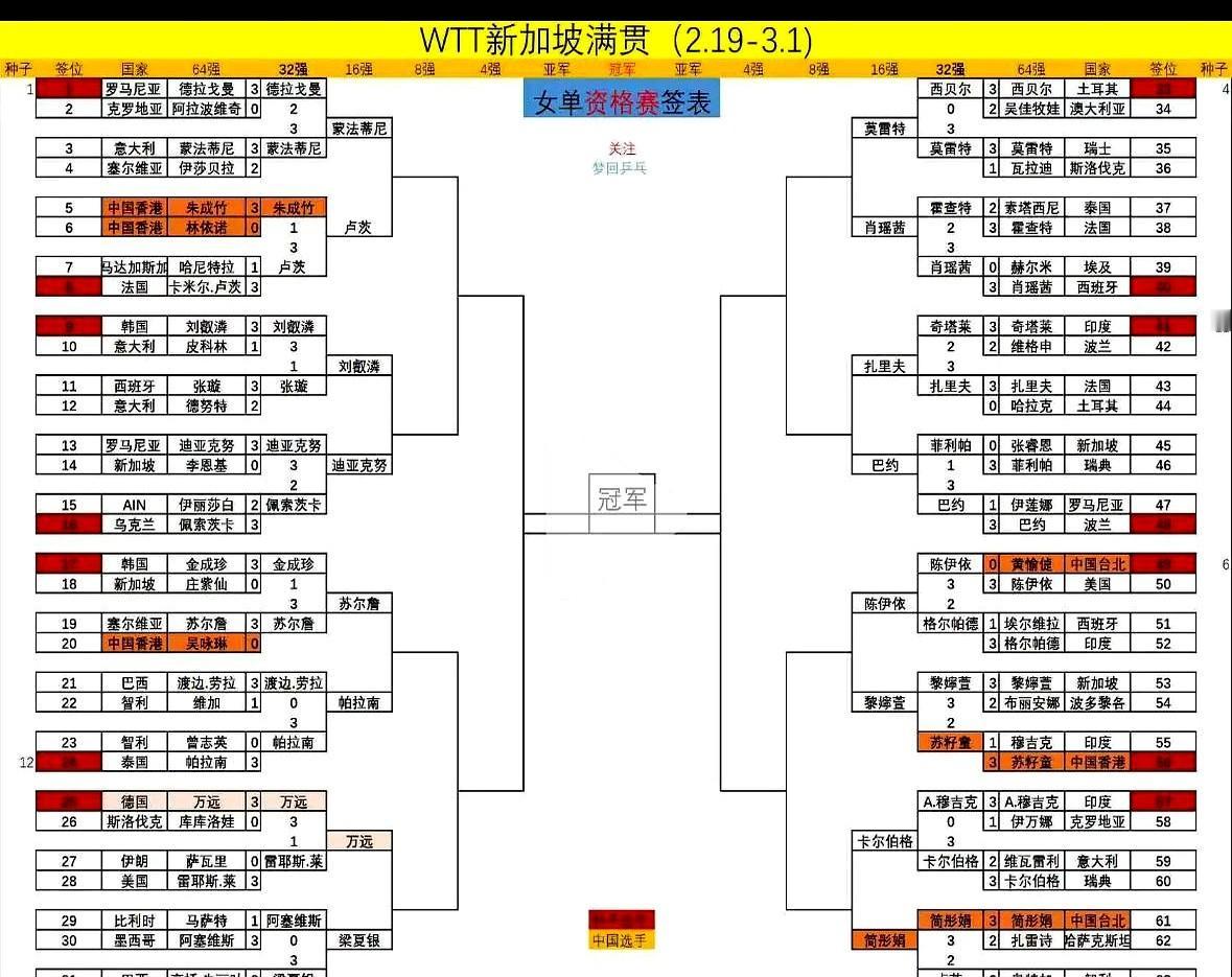 连打三场3比2,每一场都是决胜局才分出胜负,这就是WTT新加坡大满贯资格赛的残酷。 中国台北选手简彤娟,硬是把自己逼成了“五局女王”。首轮3比2逆转,第二轮3比2把二号种子卢茨拉下马,决胜轮在0比2落后的绝境下,连扳三局,最终3比2逆转瑞典选手凯尔伯,抢到一张正赛门票。 这只是资格赛的一个缩影。头号种子德拉戈曼也爆冷出局,反倒是泰国的帕拉南、德国的万远这些狠角色,一路横扫晋级。在这种顶级赛事,世界排名很多时候就是一张纸,能杀出来的,没一个善茬。 从资格赛血战上来的选手,才是正赛里最不能小看的对手。