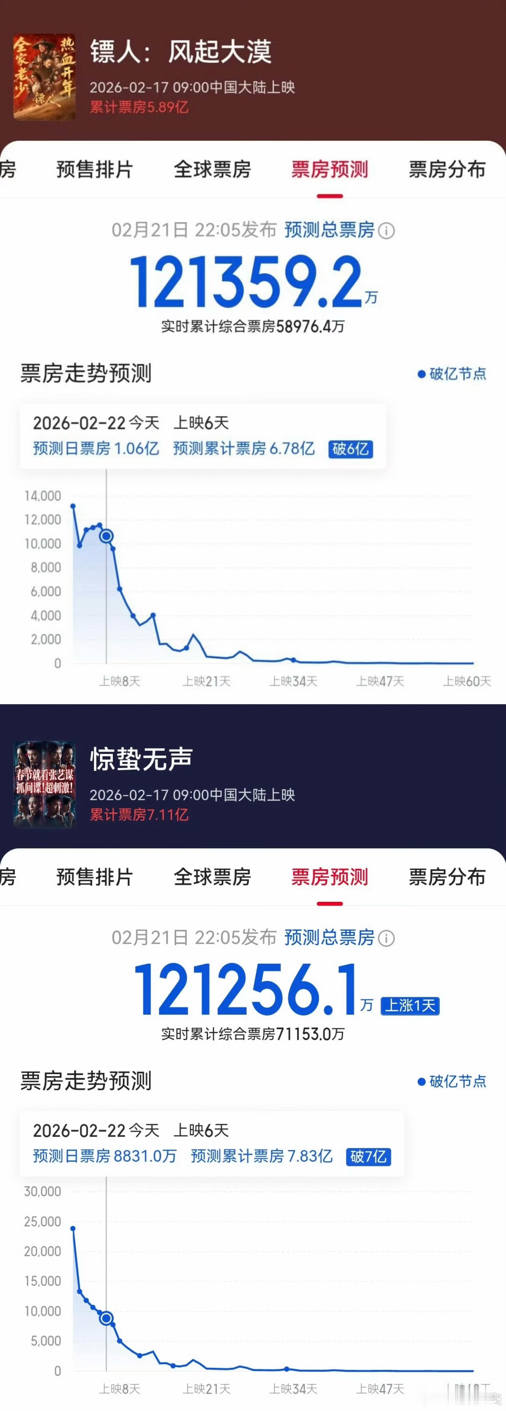 猫眼这个预测出来的时候,我算了一下,从首日8600万到现在的12.13亿,它走了21天。