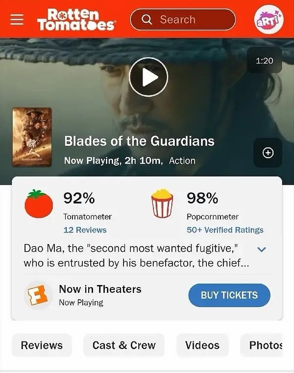 镖人镖人北美92的烂番茄和 98的爆米花,别说是华语片,全世界电影里面都是极其难得,刷都刷不出这么高来。票房在新加坡已经登顶,镖人全球范围内大爆,中国武侠值得。那些总说好评是水军的,合着吴京于适花钱收买全世界了是吧。