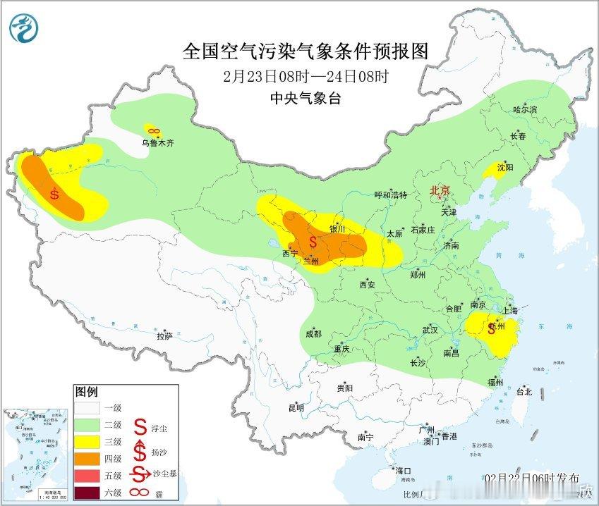 【沙尘】昨晚到今晨,沙尘西段在陕甘宁滞留,沙尘东段总体东移南下,8时沙尘前沿推进到了淮河附近。而在北京天津保定沧州一带,空气质量已经转优。从卫星监测看,高空沙尘比地面的沙尘更偏南一些。今天白天,沙尘继续南下,湖北安徽江苏上海甚至浙江北部都会受到沙尘影响。明天因为降水增多,黄淮到长江中下游的沙尘将被清除。西北的沙尘也会逐渐沉降减弱。