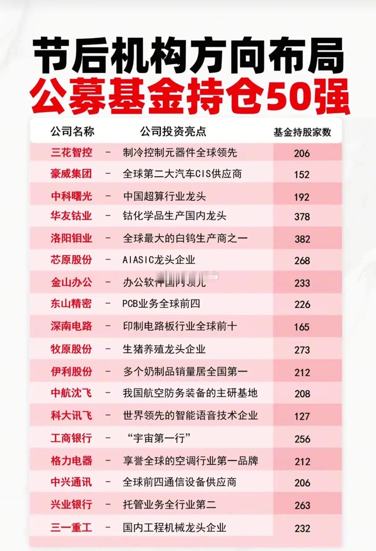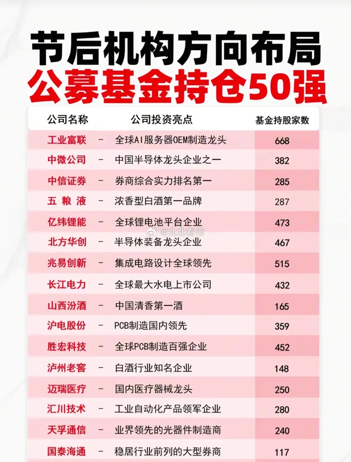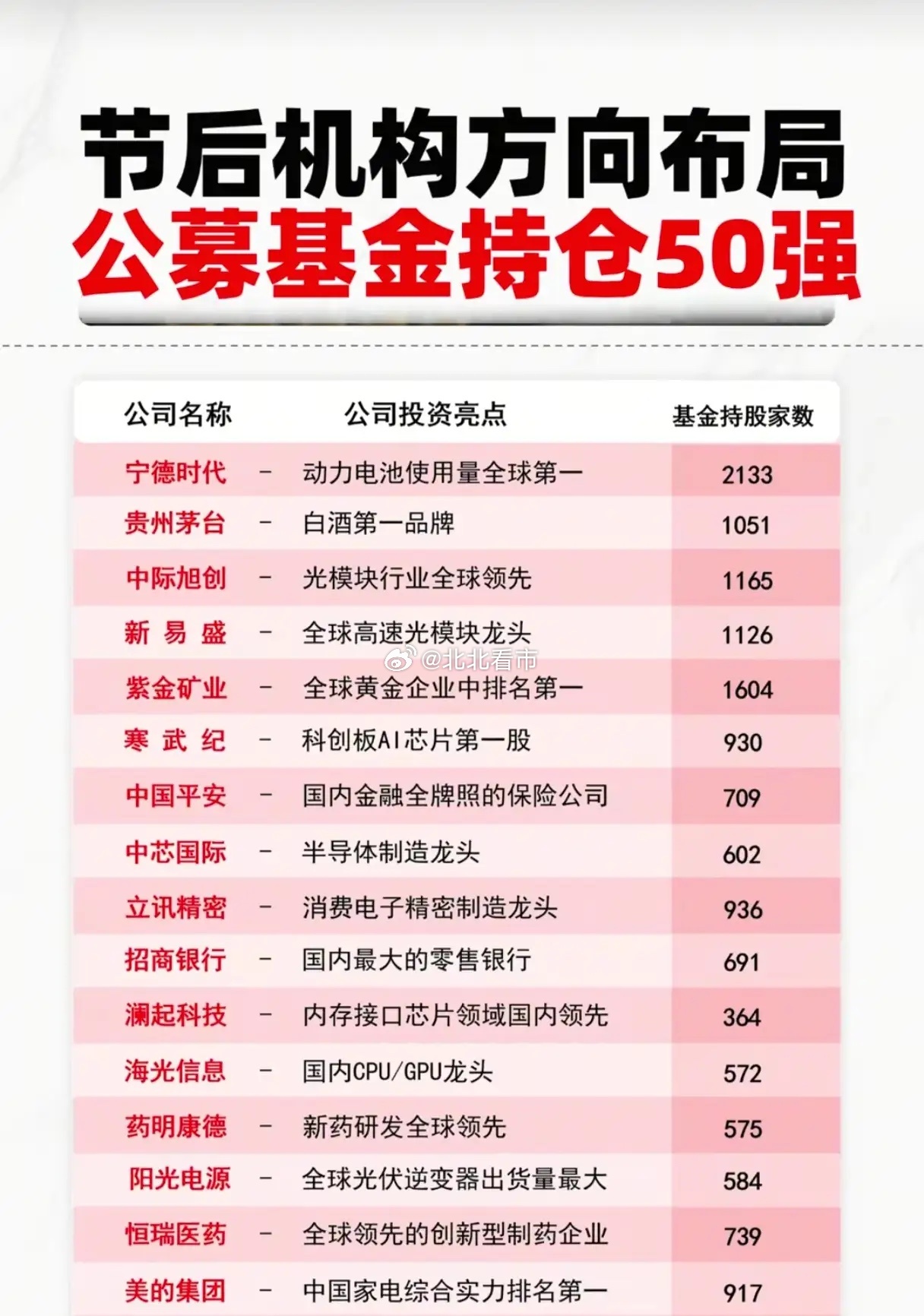 春节刚过,A股市场的“春播”钟声已然敲响。看着这份新鲜出炉的“公募基金持仓50强