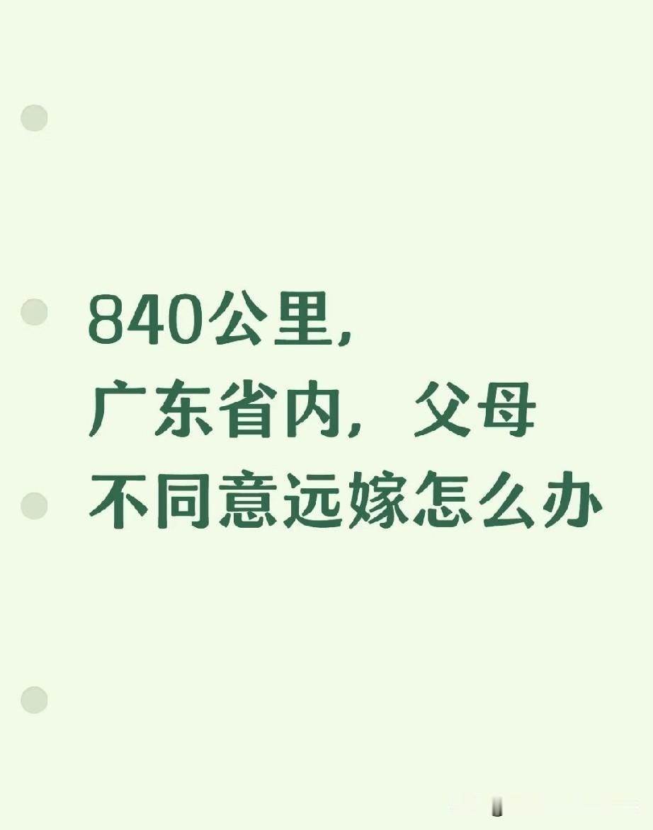 原来广东嫁广东是远嫁! 840公里,在广东也算远嫁?父母的反对,戳中了多少广东人的“省内执念” 我一个广东闺蜜,谈了个同省的男友,从粤东到粤西,地图上一量,整整840公里。她以为都是说粤语的,父母肯定没意见,结果爸妈直接放话:“你要是敢嫁那么远,就当没生过你这个女儿!” 我一开始也懵了,都是广东省内,高铁也就三四个小时,怎么就成了“远嫁”?后来才懂,在很多广东父母眼里,女儿嫁出了自己的地级市,就算是“远走他乡”。他们怕的不是距离,是逢年过节想看看外孙,还要提前抢高铁票;是女儿受了委屈,想第一时间冲过去撑腰,却被几百公里的路程绊住脚。 有人说父母太固执,可这背后藏的,是刻在骨子里的牵挂。840公里,在地图上是一条线,在父母心里,却是一道跨不过去的坎。 你身边有这样的“省内远嫁”吗?你觉得,在广东,多少公里才算真的远?