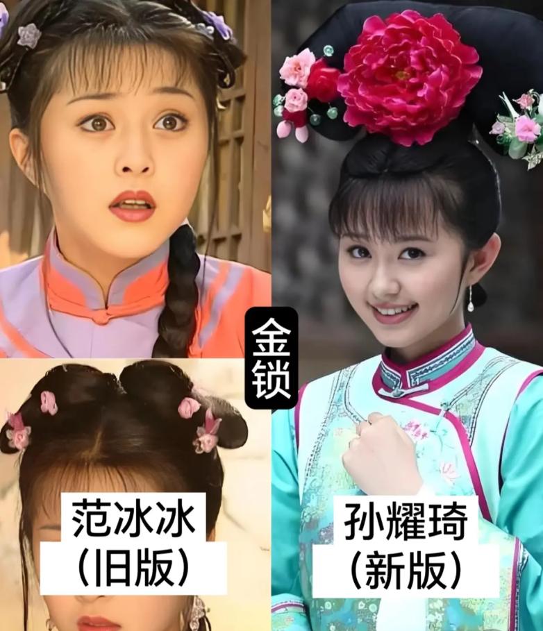 新旧两版《还珠格格》,同一个角色不同的演员对比,两版的夏紫薇都温婉动人,容嬷嬷就佩服旧版李明启演的,新版的晴儿很漂亮。 “当山峰没有棱角的时候,当河水不再流,······我还是不能和你分手,不能和你分手·······”。 熟悉的旋律承载着一代人的青春记忆,那海誓山盟的爱情影响了无数人的观念,这部琼瑶剧作品就是《还珠格格》,拍了有两个版本,受众的群体不一样,都很受观众的喜爱。 旧版的演员个性鲜明,五官辨识度高,影响大,即便是配角,如容嬷嬷,香妃、柳青、老佛爷、塞娅公主、金锁等,每一个人物都塑造的都很精彩,新版的人物全都换成了更年轻的演员,赵丽颖、海陆、麦迪娜、路宏,等等。 你比较喜欢哪一版的?