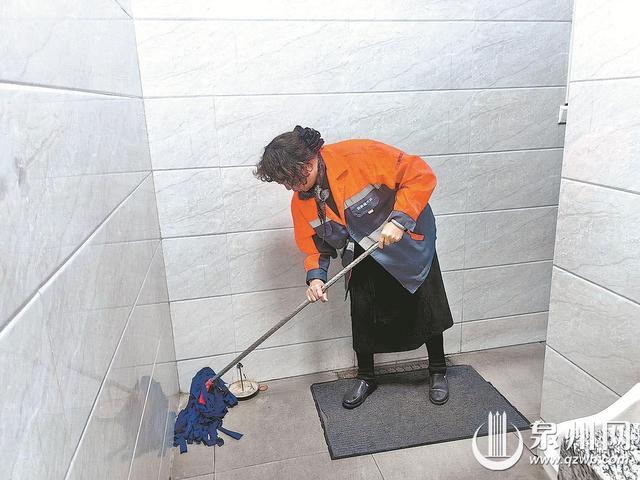 有人进出,她就立刻清理纸篓、擦拭台面;地面溅上水渍、污渍,她马上拖洗干净;每隔一小时就要更换纸巾、补添洗手液、点上香薰,一天下来反复清扫、擦洗几十次。“我自己爱干净,也得让别人用得舒服。”她对工作要求很高,但长时间的弯腰、抬手、冲洗,让她的腰和手腕又酸又胀,贴上药膏、缠上胶布,她依旧坚持工作节奏,不降低标准。