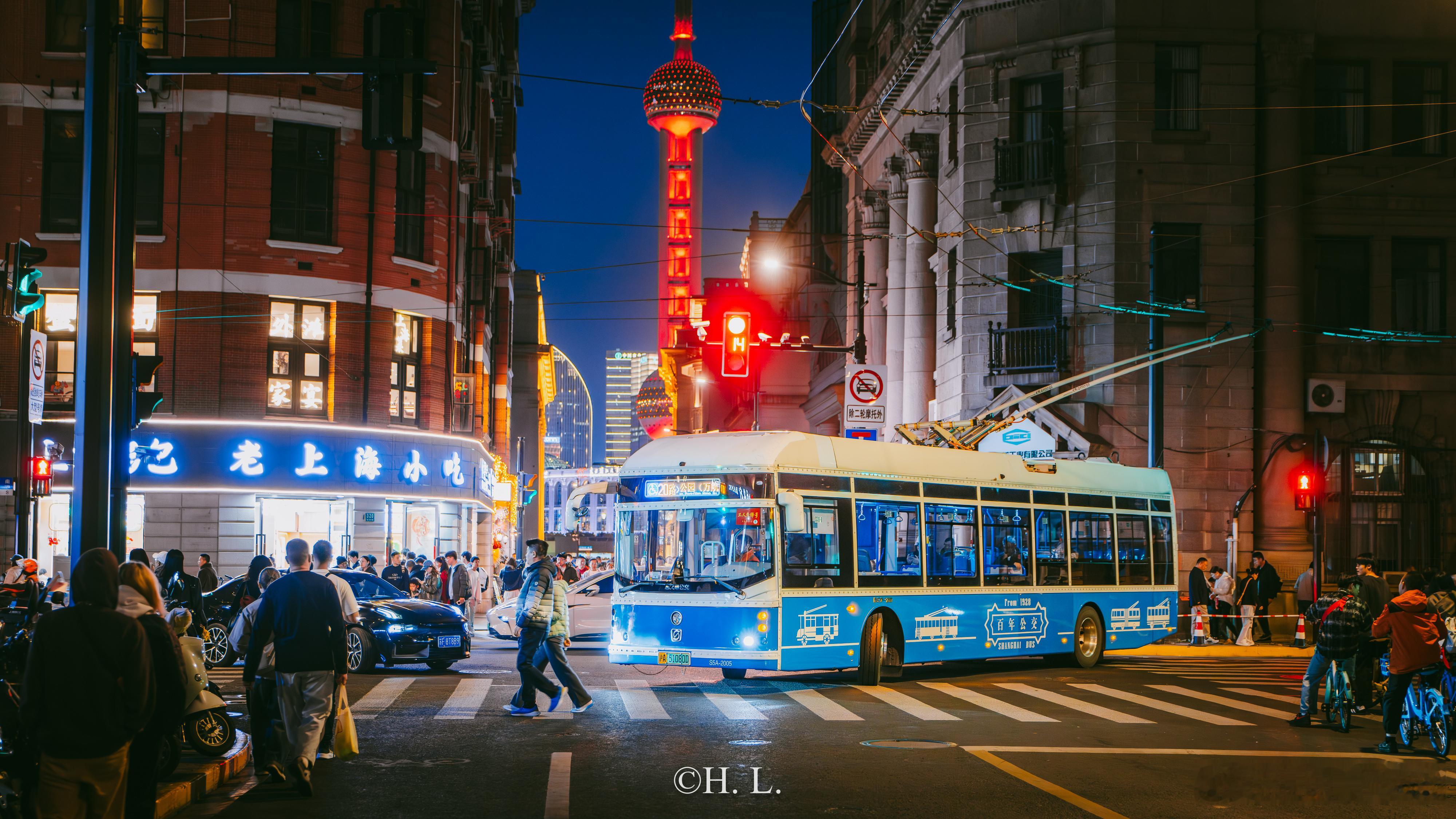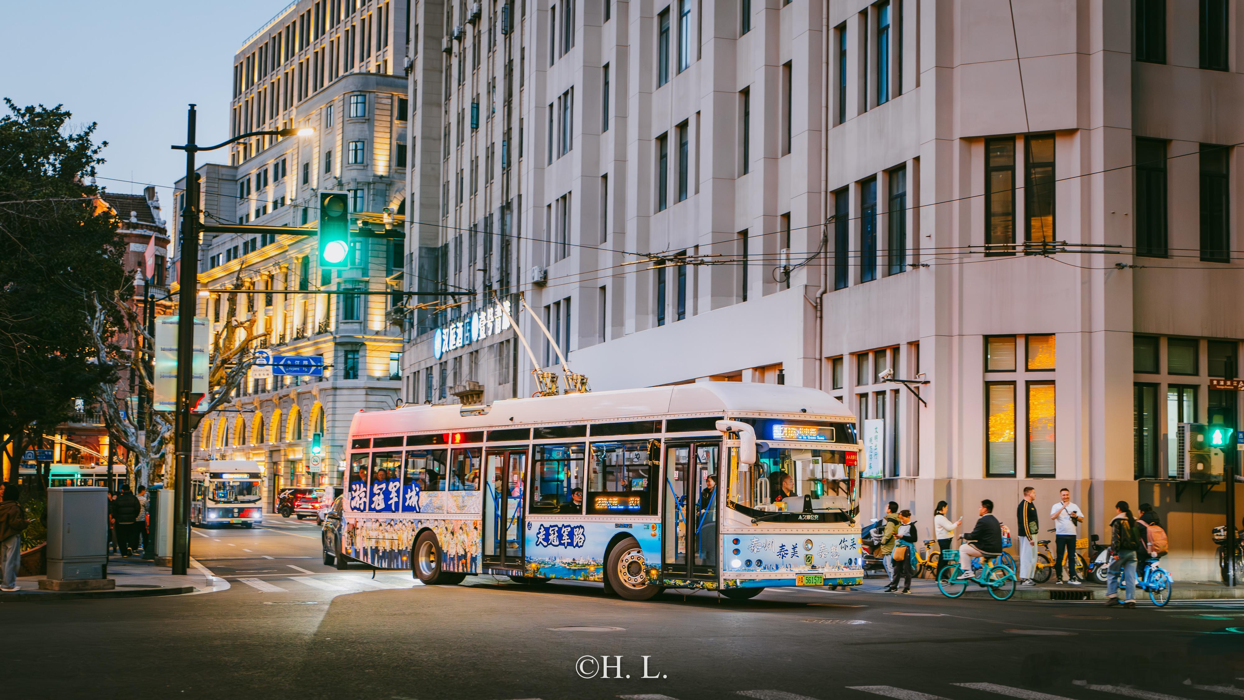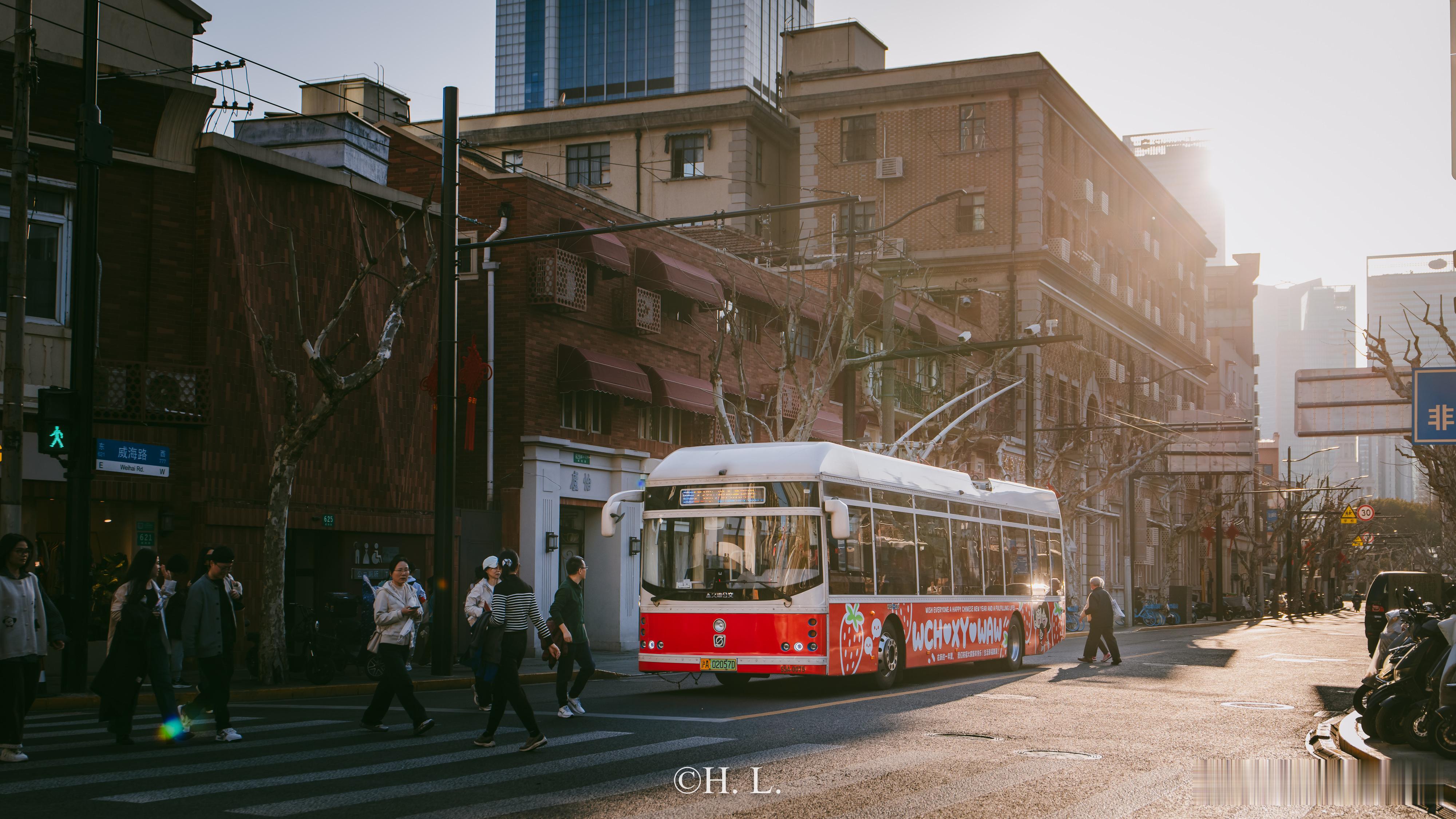 上海新年中的巴士——感觉繁忙的节奏一下放慢了下来。