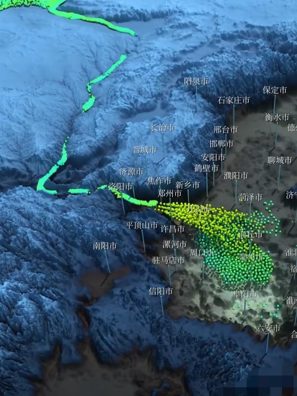 华北平原整个都是黄河冲积出来的华北地形 豫中原平原 河南以前是靠海的,后来黄河带来了大量泥沙,逐渐填平了浅海地带,冲积出了华北平原。 可喜的是,黄河还在不断地造地,也许有一天整个渤海会变成陆地,山东、河北和辽宁的面积会越来越大。