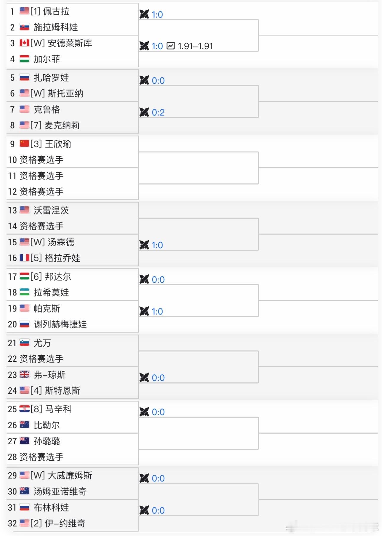 签表如图1,王欣瑜位列3号种子和佩古拉(1)一个半区,卫冕冠军佩古拉刚刚夺得迪拜1000赛桂冠,奥斯汀不知道打不?