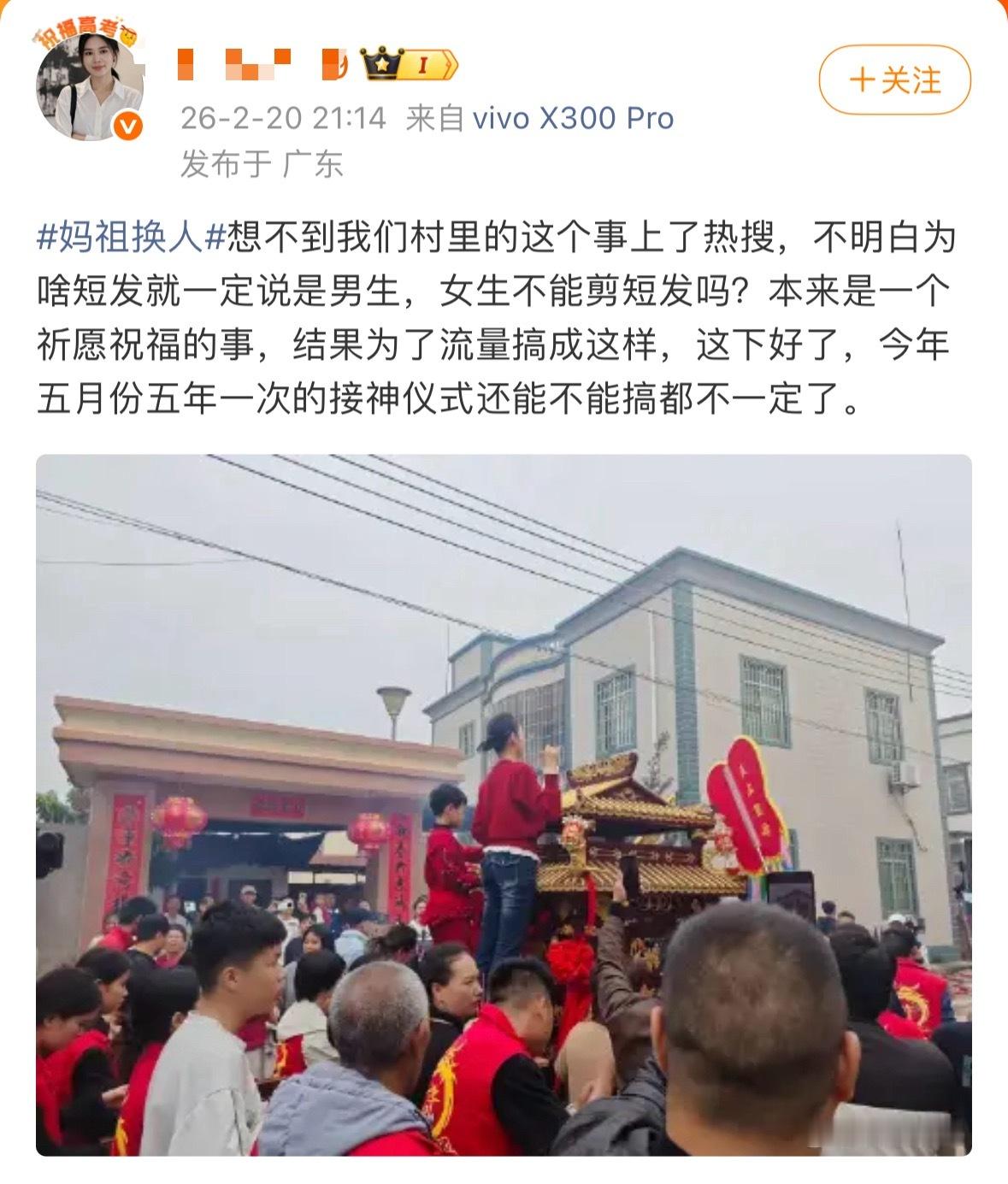 妈祖换人有自称是妈祖事件同村村民的网友发声称,所谓的耀祖也是个小女孩。这就很尴尬了。