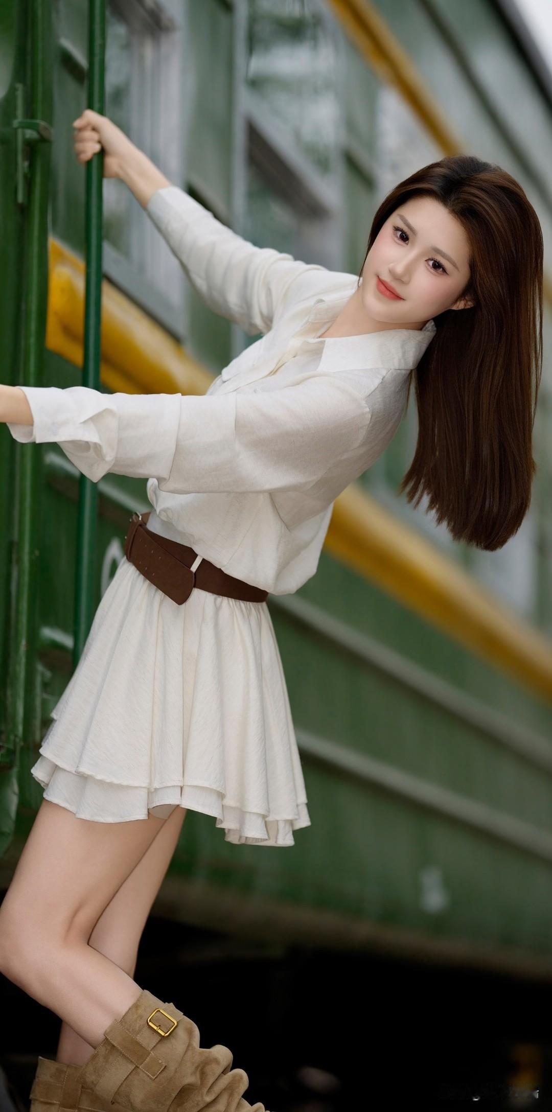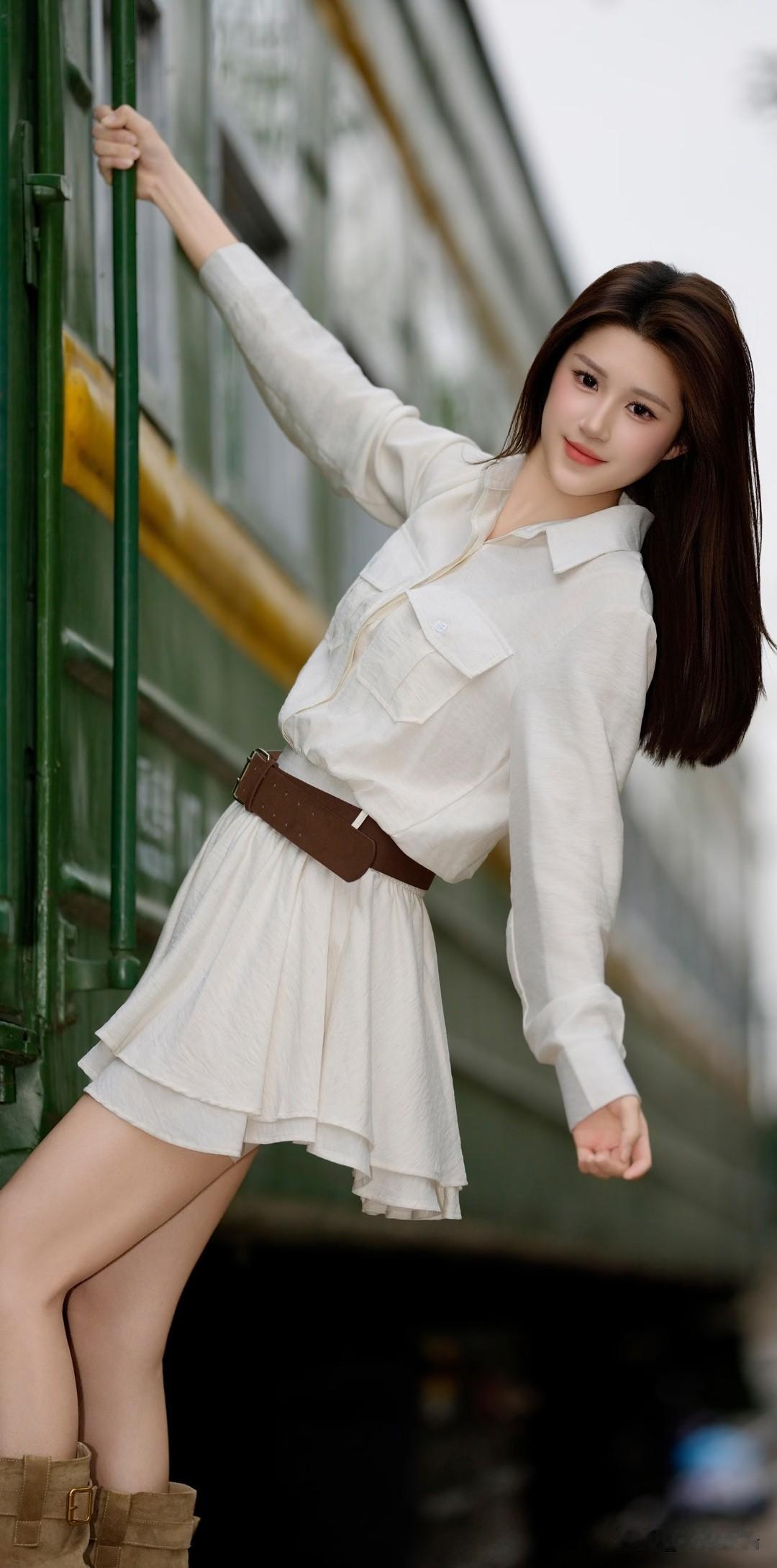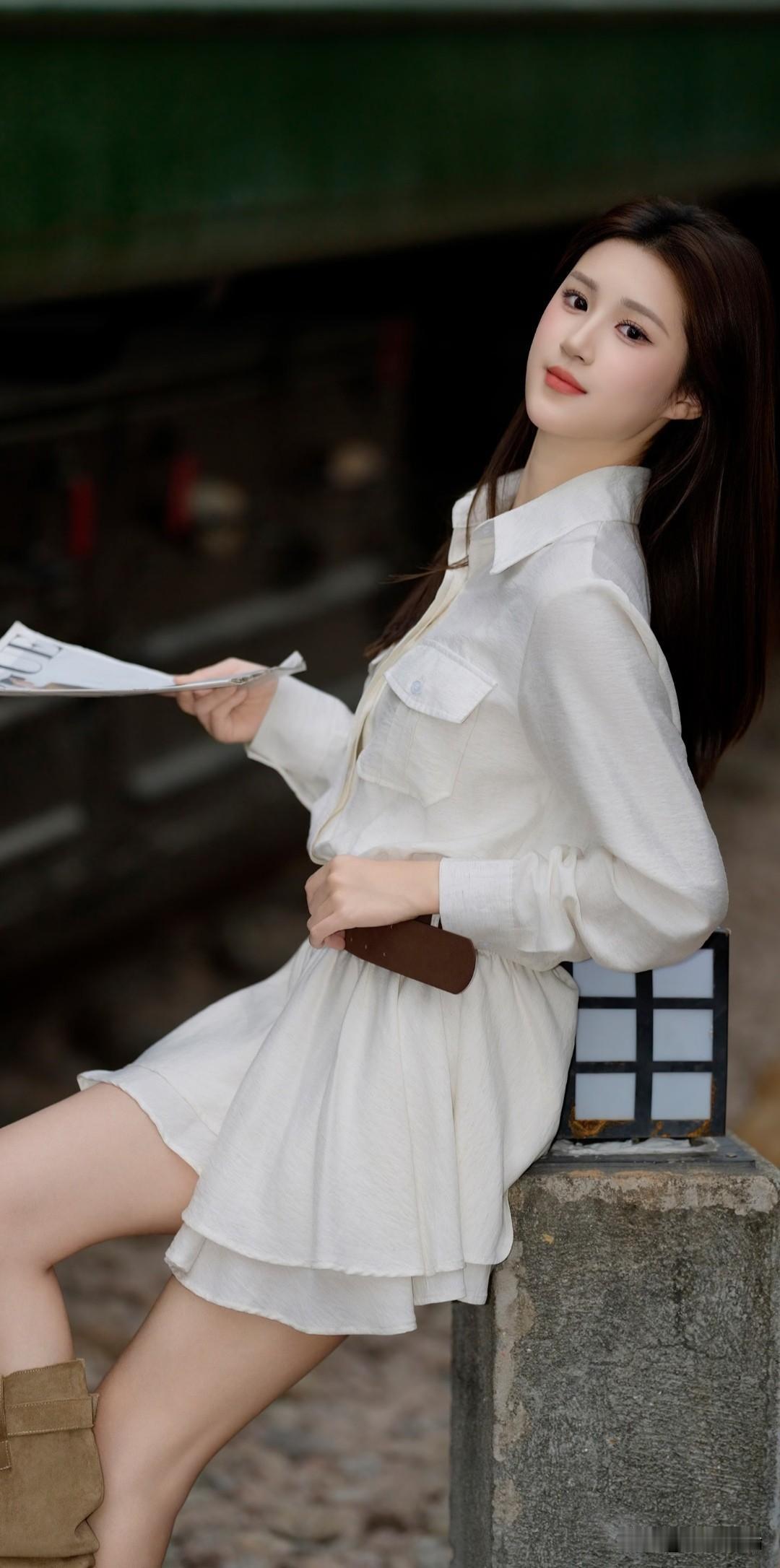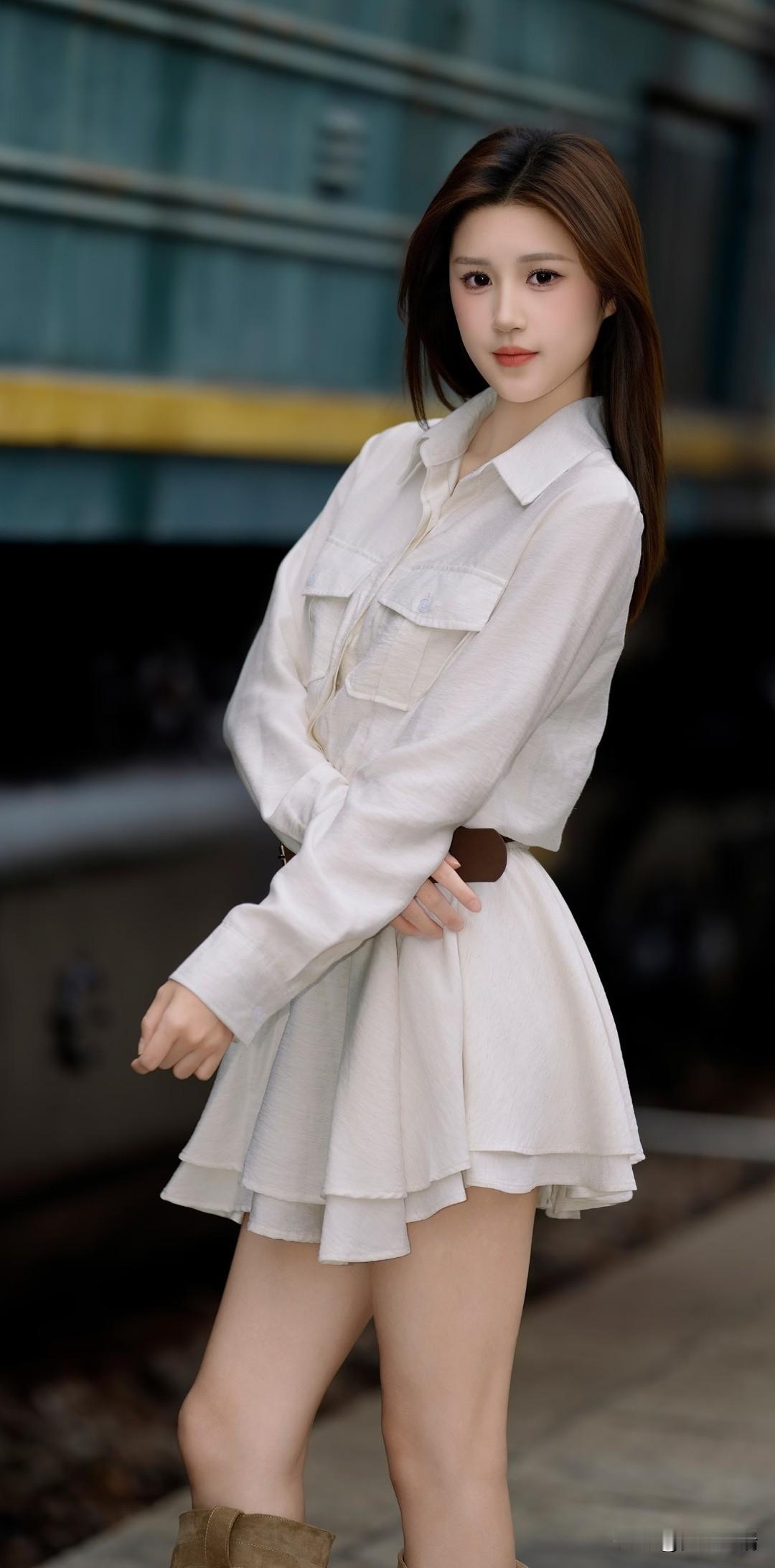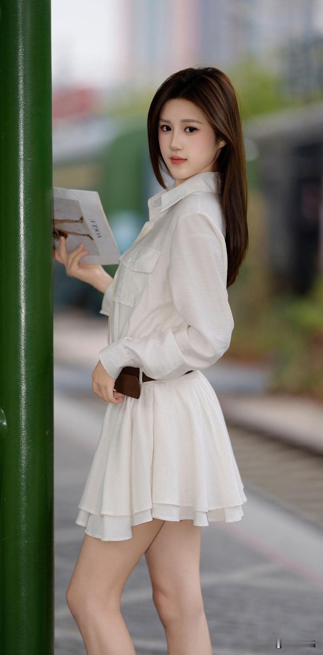 清新少女风,白色衬衫裙搭配棕色腰带,简约时尚!