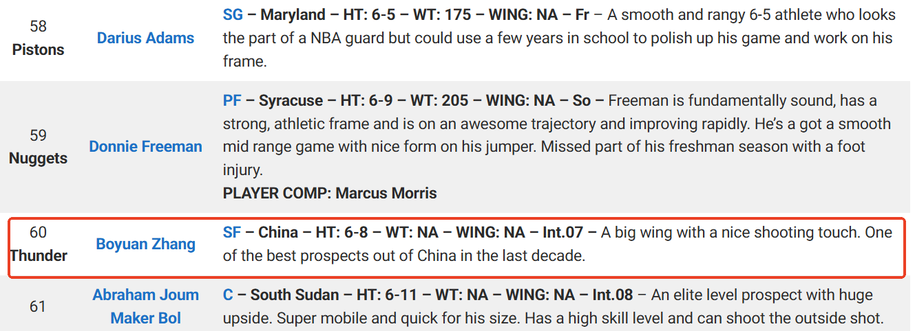 NBADraftRoom评价道:“他拥有出色的投篮手感,是过去十年里中国最被看好的球员之一。”