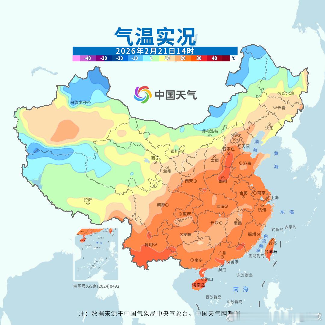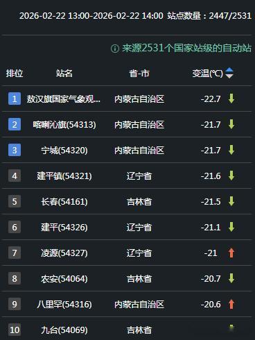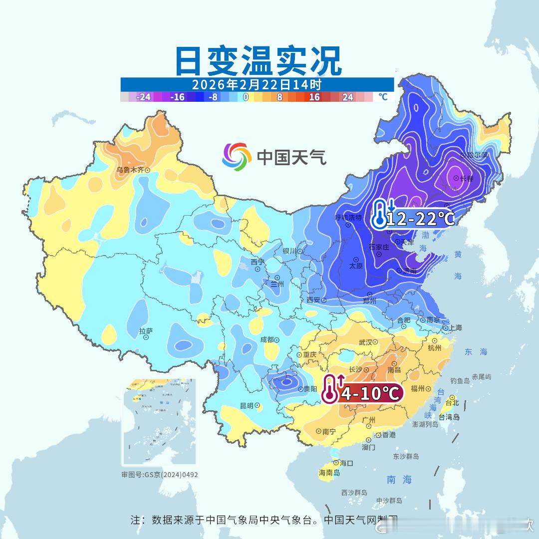 【气温】今天因为强冷空气影响,东北华北黄淮多地出现10-20℃的降温,内蒙古敖汉旗降22.7℃、辽宁建平镇降21.6℃、吉林长春降21.5℃,为各自省区14时降温最强站点。而在长江以南多地,气温上升。长沙、武汉、杭州、福州、海口气温创今年新高,长沙和杭州为今年首次上25℃。