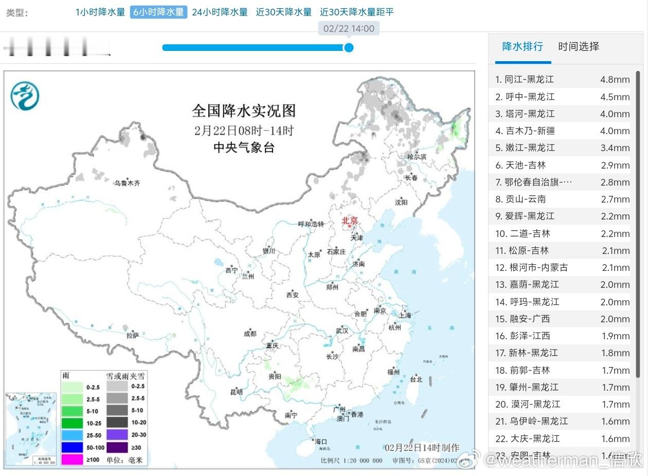 【雨雪】今天08-14时,内蒙古黑龙江等地继续出现降雪。今天下午到明天中午,黑龙江西北部可能还有大雪-暴雪。另外今晚到明天,暖湿气流加强北上,黄河以南的降水自西向东发展增多,重庆贵州湖南等地还会出现对流。