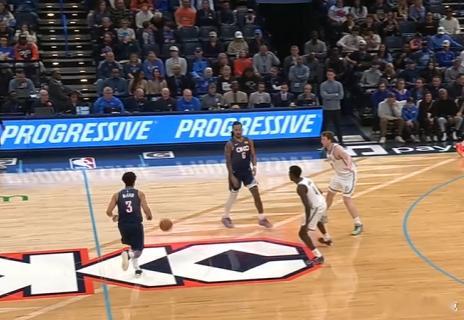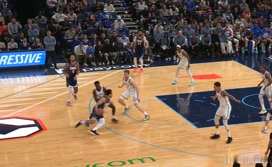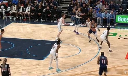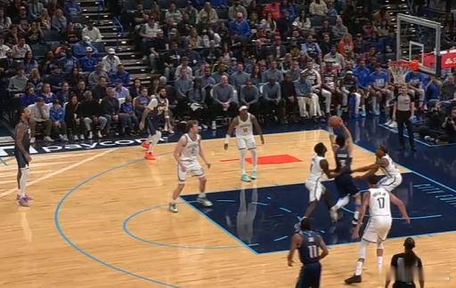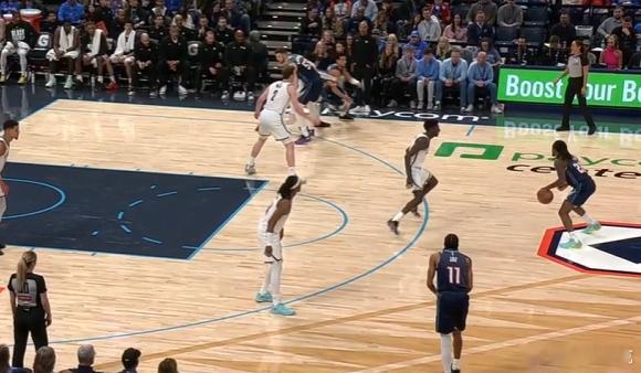 7 8 9 10 11卡森哈腾弧顶挡拆佯攻后,麦凯恩立即无球借掩护起手执行“Veer Screen”,接球后顺势启动突破,行进至罚球线立即使用一二步急停拔起出手后仰中投,稳稳命中。