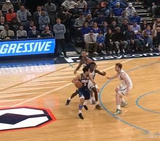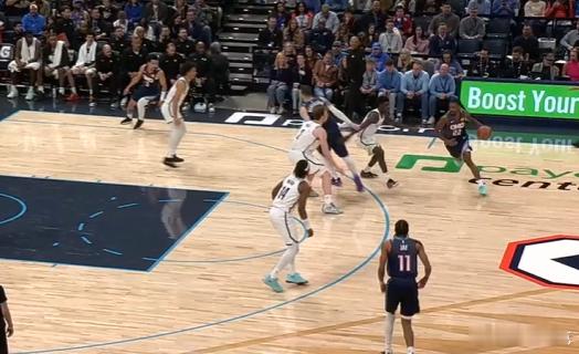 123456麦凯恩无球跟进过半场后中圈接杰林击地回传,随即衔接在弧顶的挡拆发起,行进间回拉躲过沃夫强延误后立即启动突破杀入篮下,大回环合球躲过篮下阿巴基协防后一记反篮终结稳稳命中。