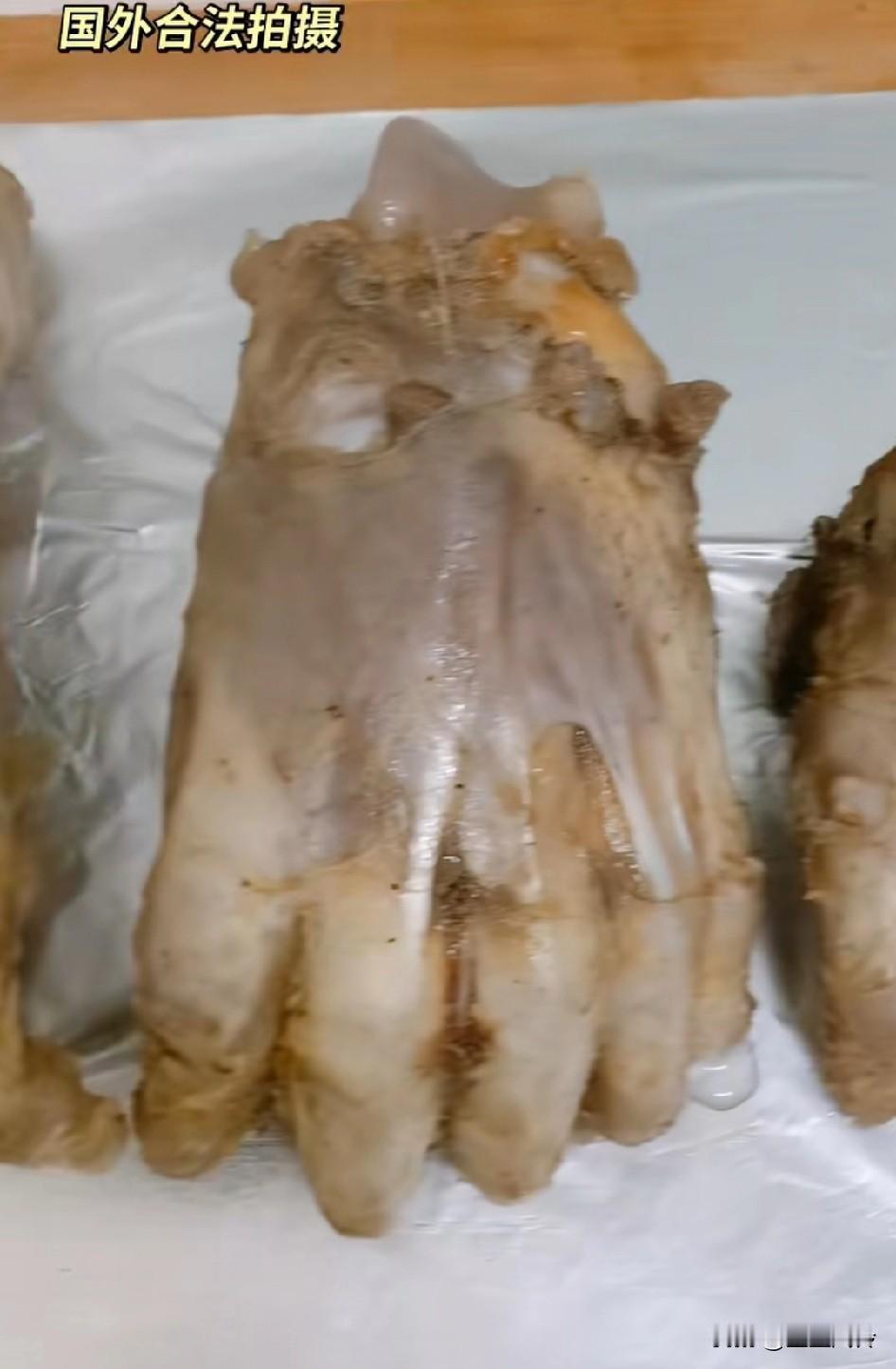 马来西亚人竟然吃熊掌还是合法的,太吓人了,怎么跟人手似的,资本只要利润超过三倍就敢践踏一切法律 人的脂肪是黄色的,这人白的,是动物的。这可是一条条生命啊!怎么能忍心去满足这种口舌之欲?现在都不背着人了,直接放视频出来。不知道人怎么那么毒什么都吃,这个吃了长生不老吗?