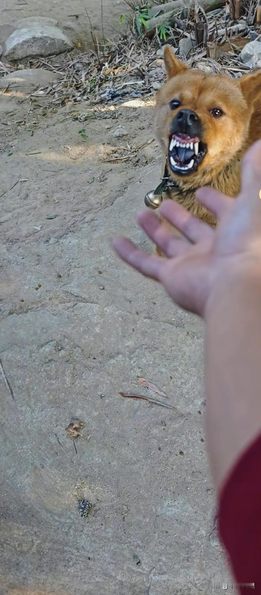 主人伸出手想和狗狗玩耍,还摸了摸它的头,谁知它龇牙咧嘴地对着主人。这可把主人惹恼