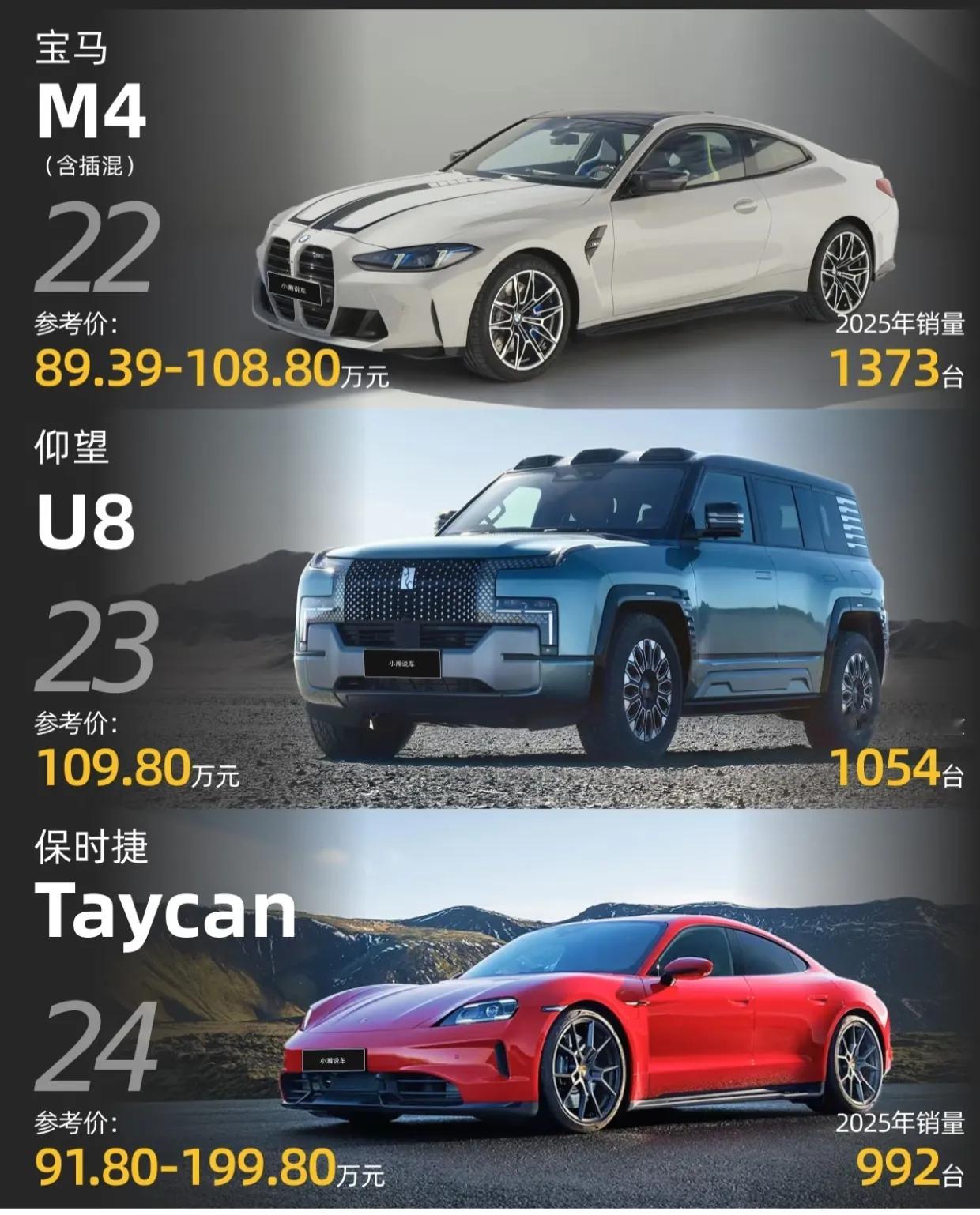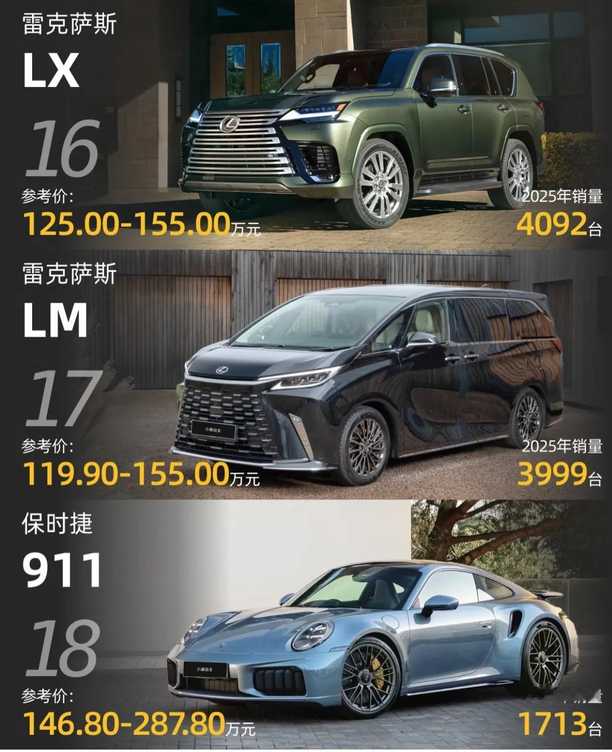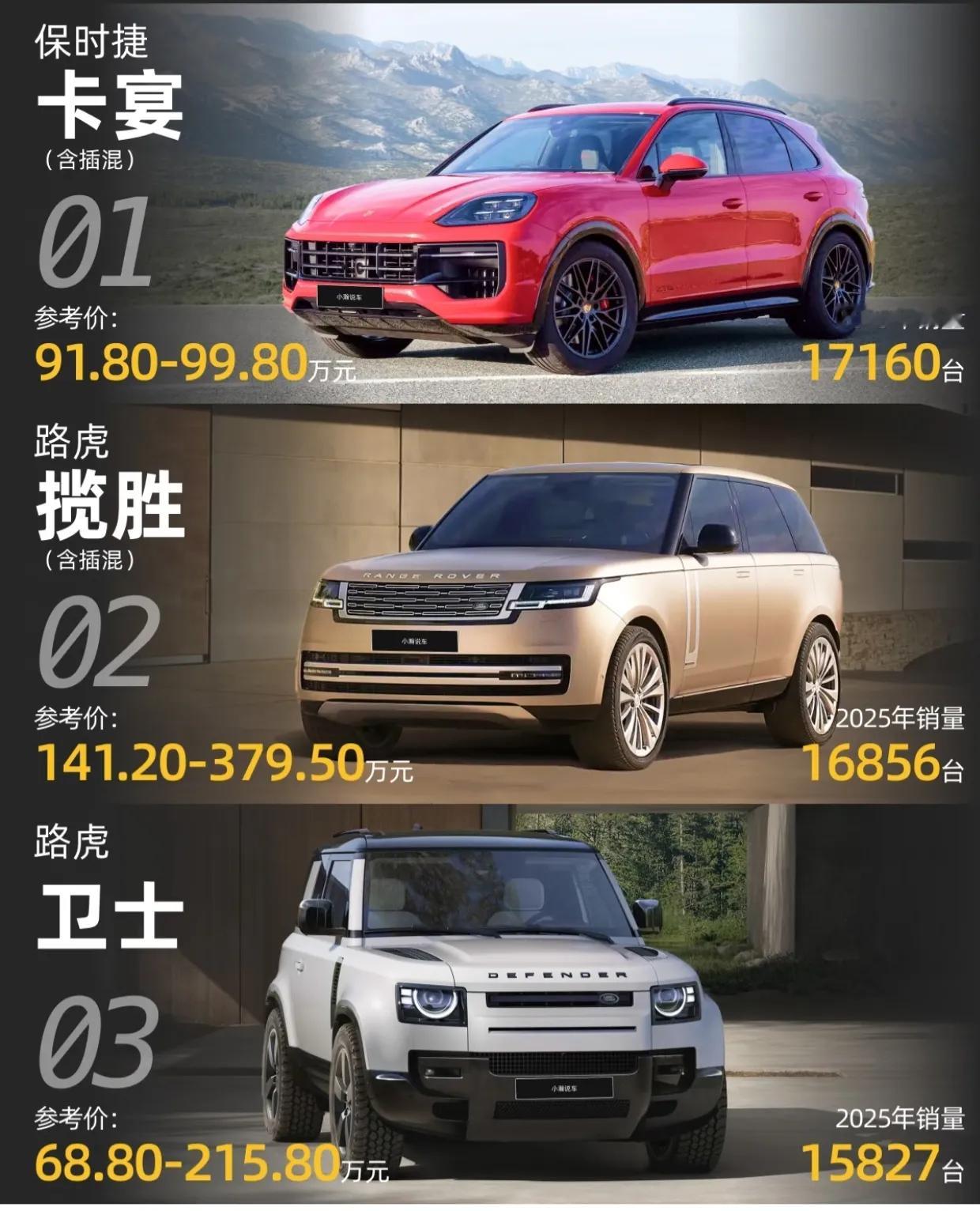 2025年的100万+豪车销量排行榜,传统豪华品牌(奔驰、宝马、迈巴赫)仍绝对垄断,SUV是主流!