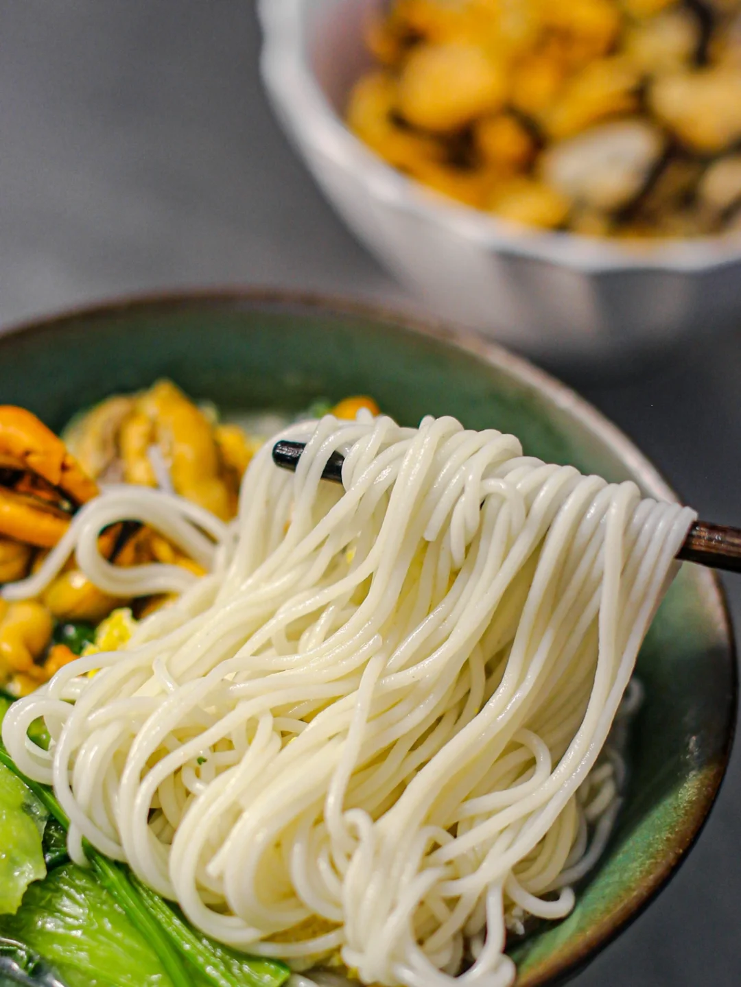 🌟5.煮熟的面条放入碗中,倒入这个鲜汤即可。
