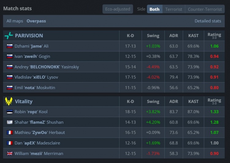 Vitality:mezii、apEX、ropz、flameZ、ZywOo