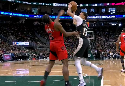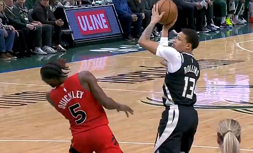 罗林斯转身挥肘打到奎克利面部,被吹技术犯规