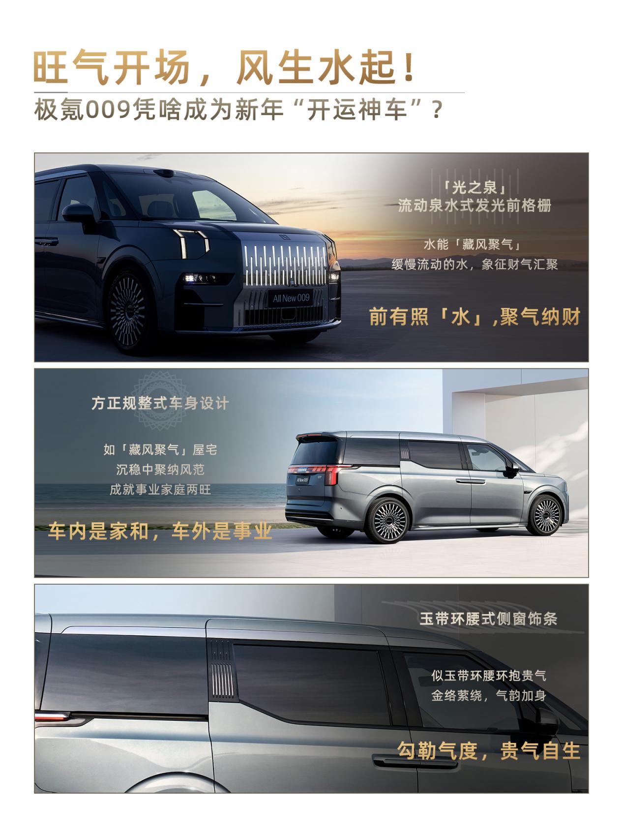 这据说是因为009的设计很有讲究,前脸聚财,车身稳运……虽然不懂风水,但看起来就觉得很旺车的样子!