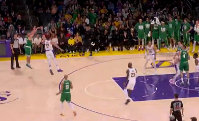 普理查德超远三分压哨命中,半场战罢凯尔特人领先湖人10分