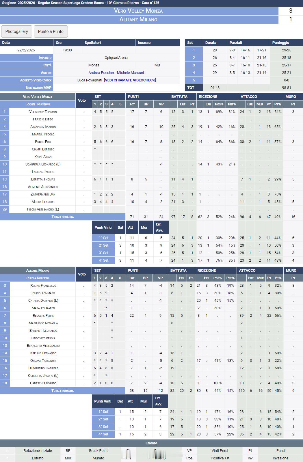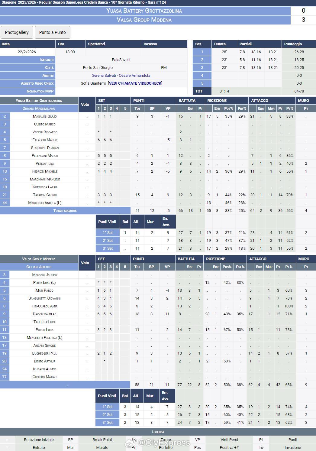【意超男排皮亚琴察3-1特伦蒂诺 希斯特纳2-3鲁贝】国际排坛战报速递 2月22日,意超男排第21轮结束。皮亚琴察主场3-1(23-25/25-23/25-21/25-22)击败特伦蒂诺,曼迪拉齐25分、古铁雷兹18分、波沃伦塔11分,巴塔16分、弗雷14分、托维12分;希斯特纳主场2-3(18-25/17-25/25-23/29-27/7-15)惜败奇维塔诺瓦,巴罗托29分、垂水优芽12分、穆尼兹11分,尼科洛夫34分、洛普基15分。其余三场:格罗塔佐利纳0-3(26-28/18-25/20-25)摩德纳库内奥2-3(25-21/17-25/25-22/21-25/14-16)帕多瓦蒙扎3-1(23-25/25-18/25-17/25-21)米兰