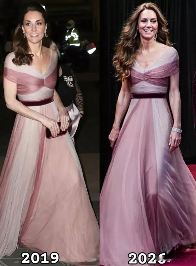 凯特身穿七年前的礼服,但是眼睛里却没光了。 昨天,威廉王子和凯特王妃惊喜现身,合体参加本年度的英国电影学院奖颁奖典礼现场。 由于众所周知的身体原因,前两年凯特都没来,今年终于又参加啦。 凯特这次穿的这条粉红色拼贴长裙,曾经在2019年穿过,从第一张照片的对比来看,凯特身材五官几乎都没有变化,只是2026年的凯特,眼里的还有光。